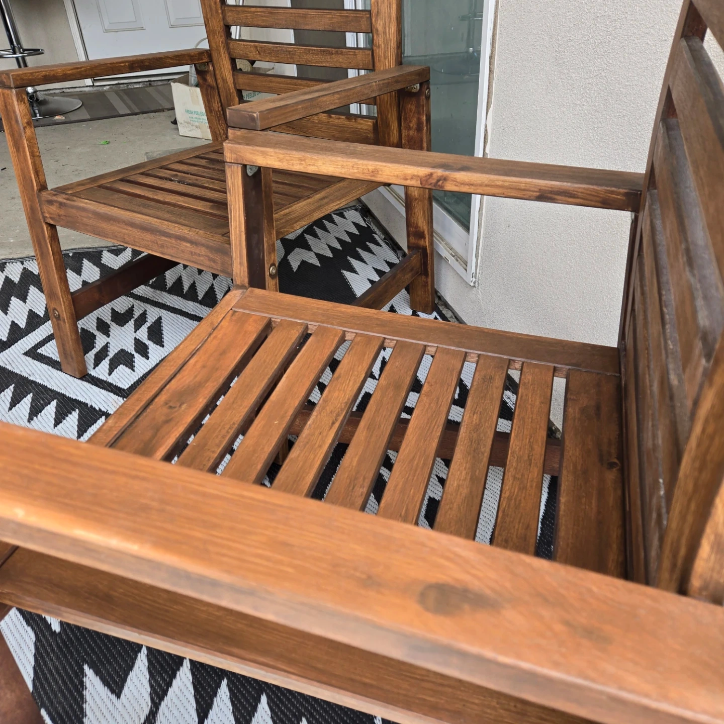 2 newly sanded and stained ikea applaro outdoor chairs