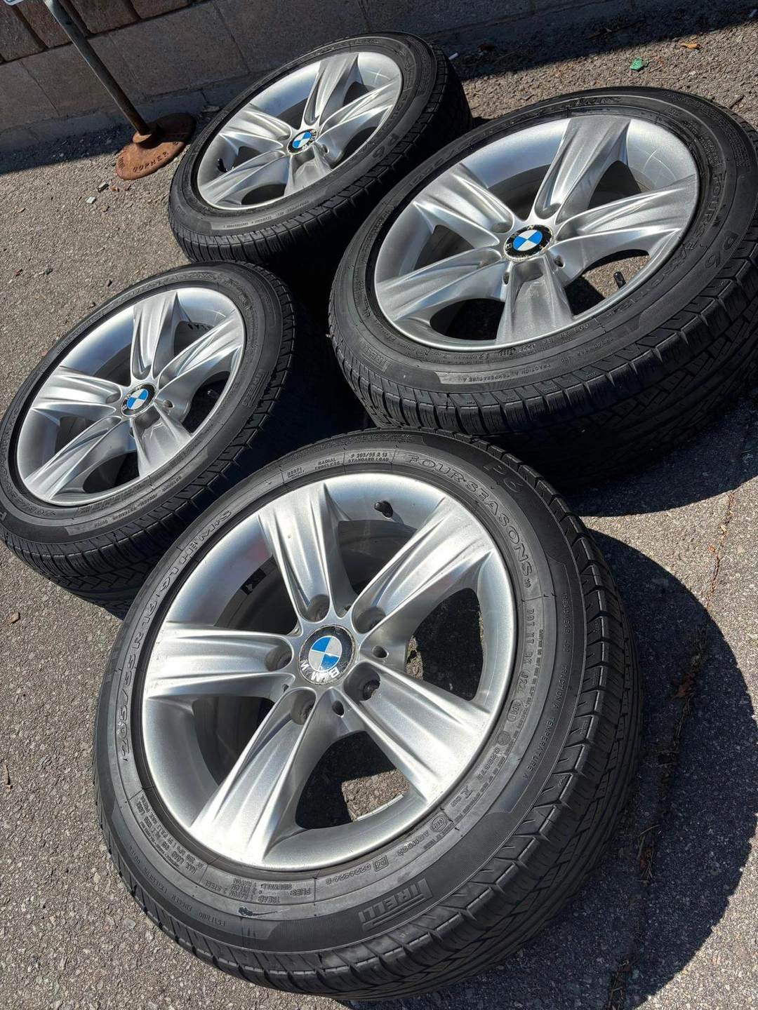 Set of four Authentic 16 inch BMW Style 391 wheels with 205 55 R16 Pirelli P4 Four Seasons all season tires mounted and balanced on them