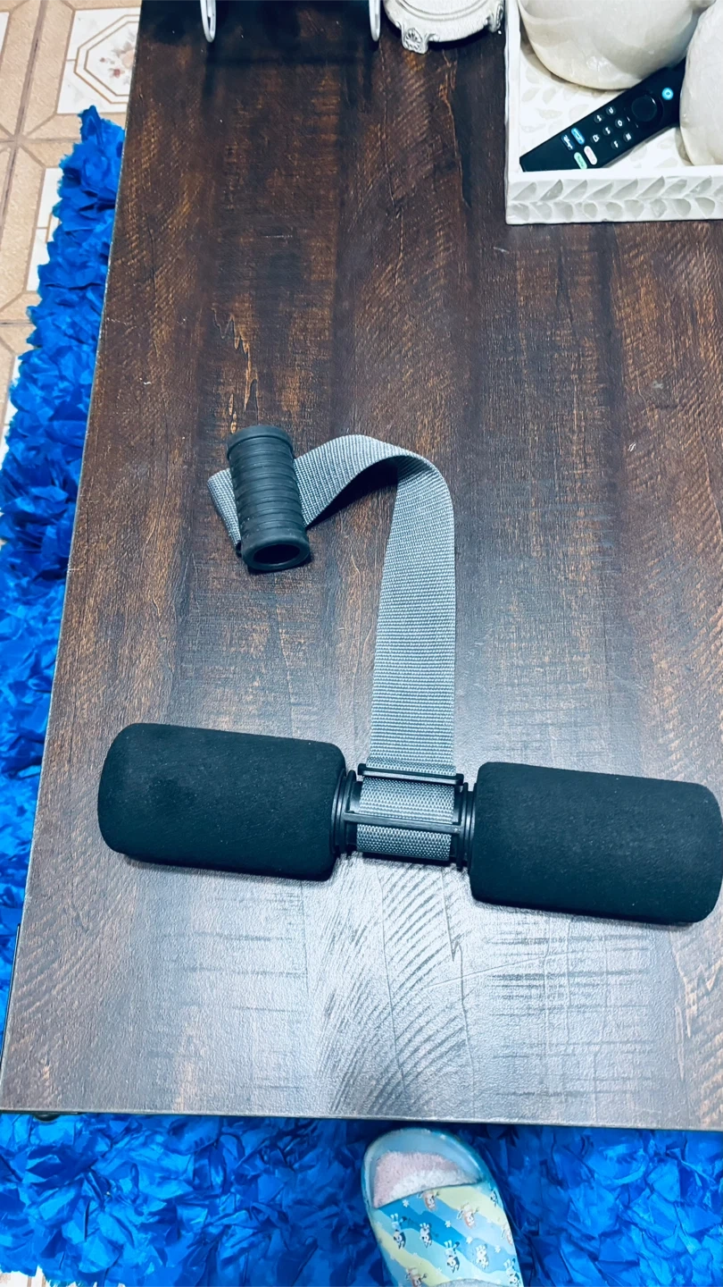 This sit up bar is designed for home fitness. It features foam padding for comfort and an adjustable strap for secure attachment. Simply slide it under a door to help with sit-ups and other exercises!