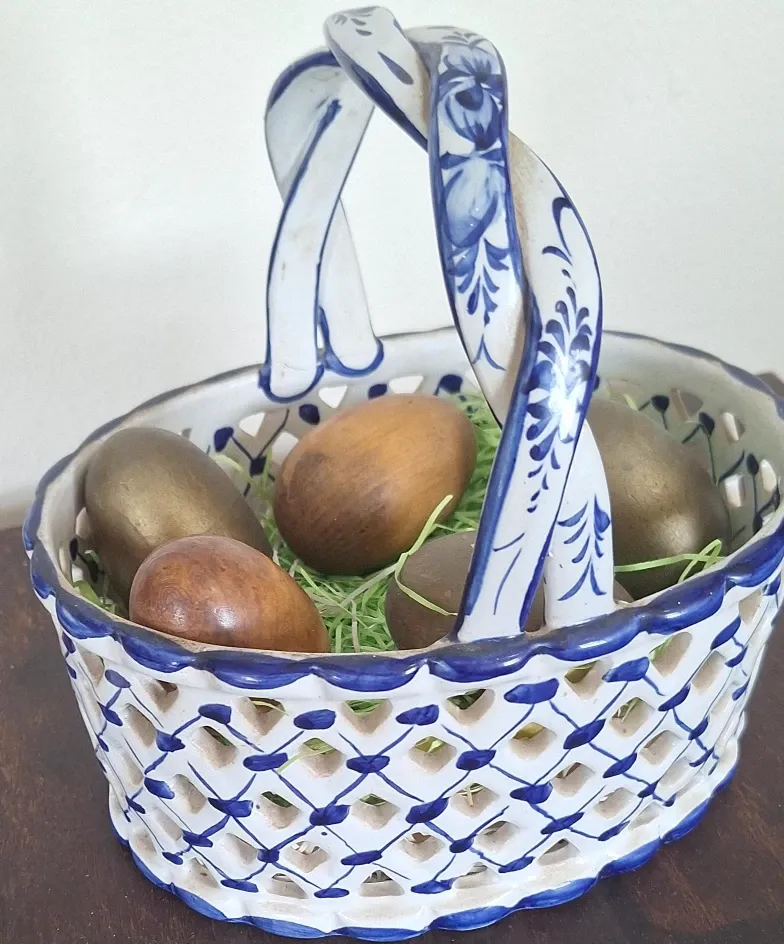 Decorative Ceramic Easter Basket with Blue Willow Design