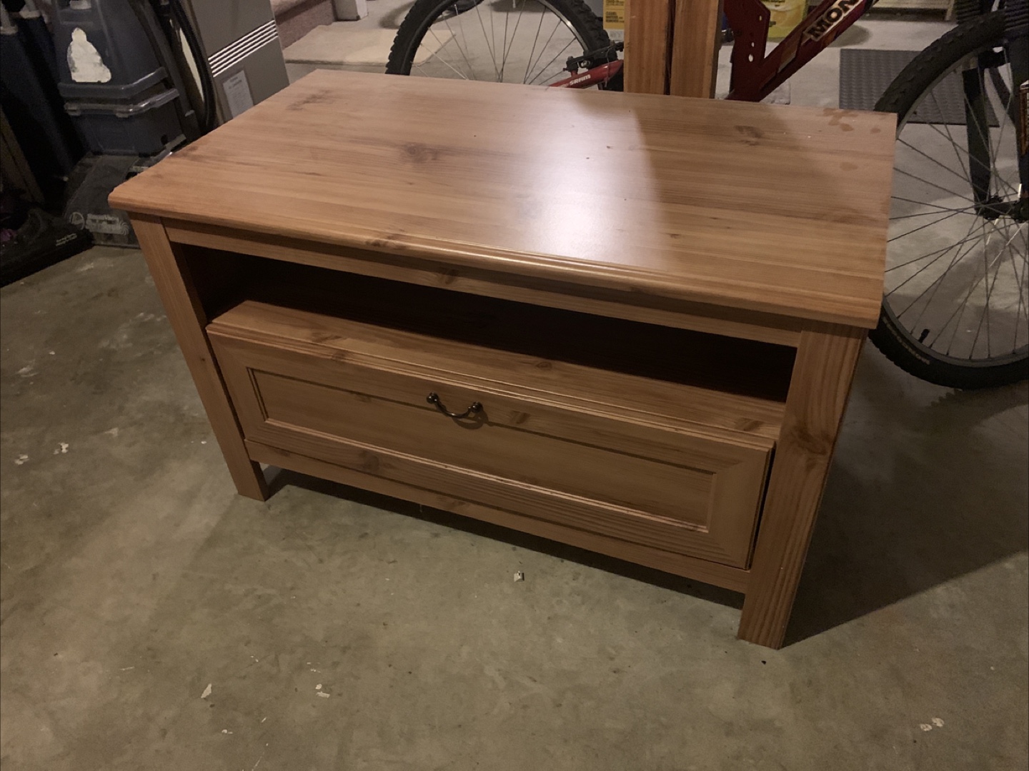 Buy & SellIKEA Hemnes TV StandIKEA Hemnes TV Stand$10Solid pine wood TV stand. One drawer and one shelf. Good used condition. Some minor wear.ConditionGoodDimensions36.5 x 22.5 x 20 inchWHERE TO MEETCheck LocationView MapSELLERRJBOakalle473 reviews2 chats·4 favorites·90 viewsSEND CHAT TO SELLERHi RJB! I’m interested in your listing.Hi RJB! I’m interested in your listing.Get the Karrot app to chatSign In to chat