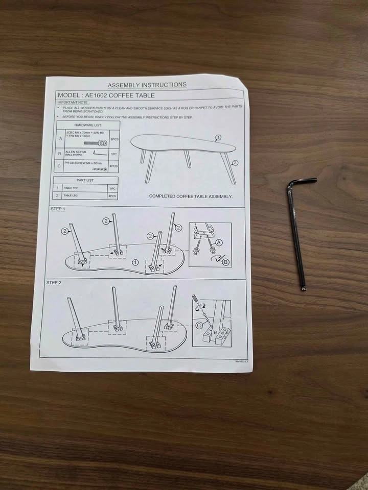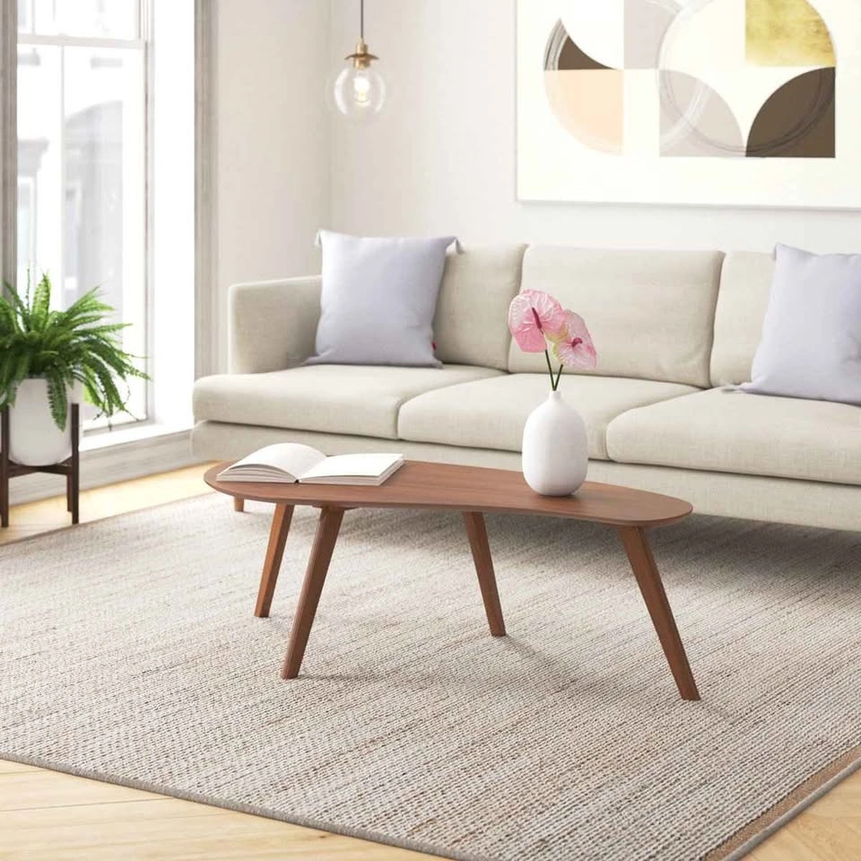Modern mid-century style coffee table with a smooth walnut-finish top and angled legs. Clean, minimalist design that fits perfectly in living rooms, condos, and apartments.