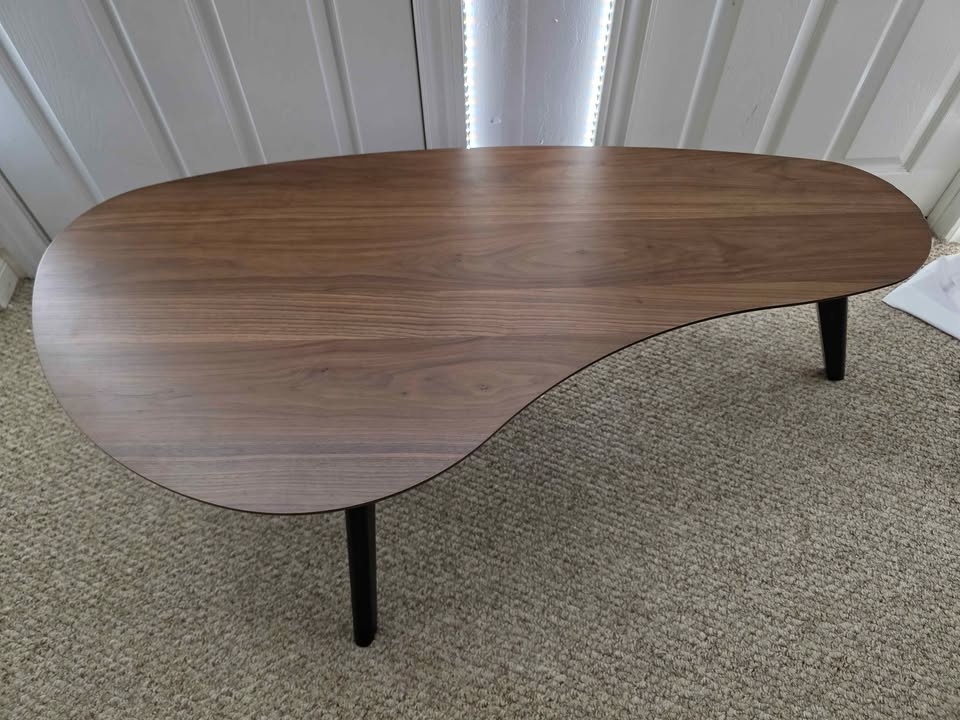 Modern mid-century style coffee table with a smooth walnut-finish top and angled legs. Clean, minimalist design that fits perfectly in living rooms, condos, and apartments.