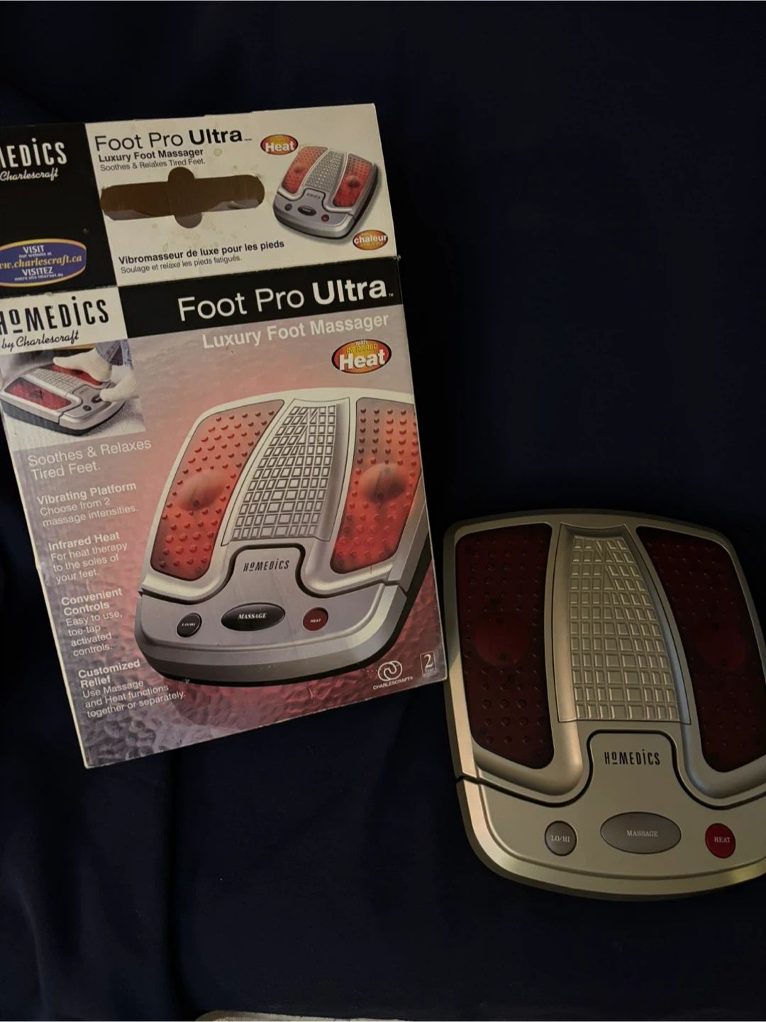 This HoMedics Foot Pro Ultra luxury foot massager soothes and relaxes tired feet. It features a vibrating platform with two massage intensities and infrared heat for therapy to the soles of your feet. Controls are convenient and easy to use, with massage and heat functions that can be used together or separately. A great way to unwind after a long day!