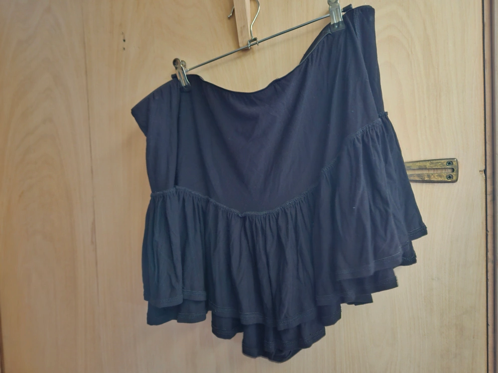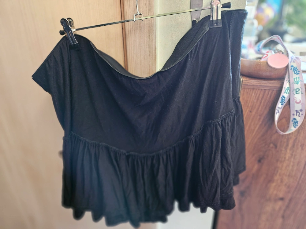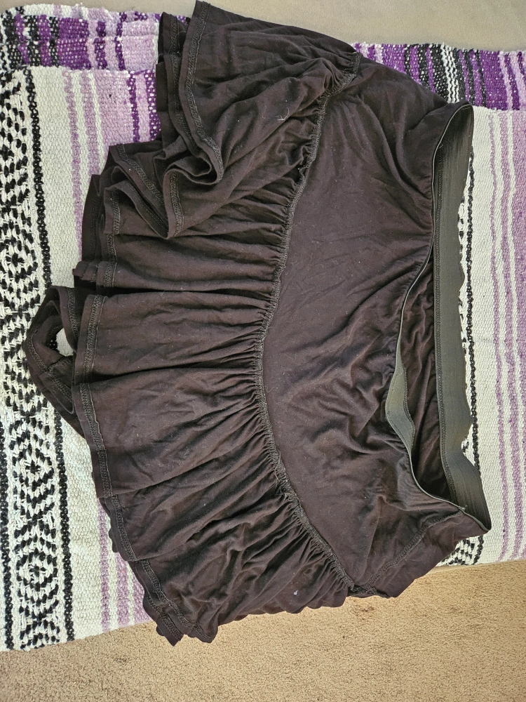 Black foxblood ruffled miniskort in 4x. Elastic waist, with shorts underneath the ruffled skirt for maximum comfort.