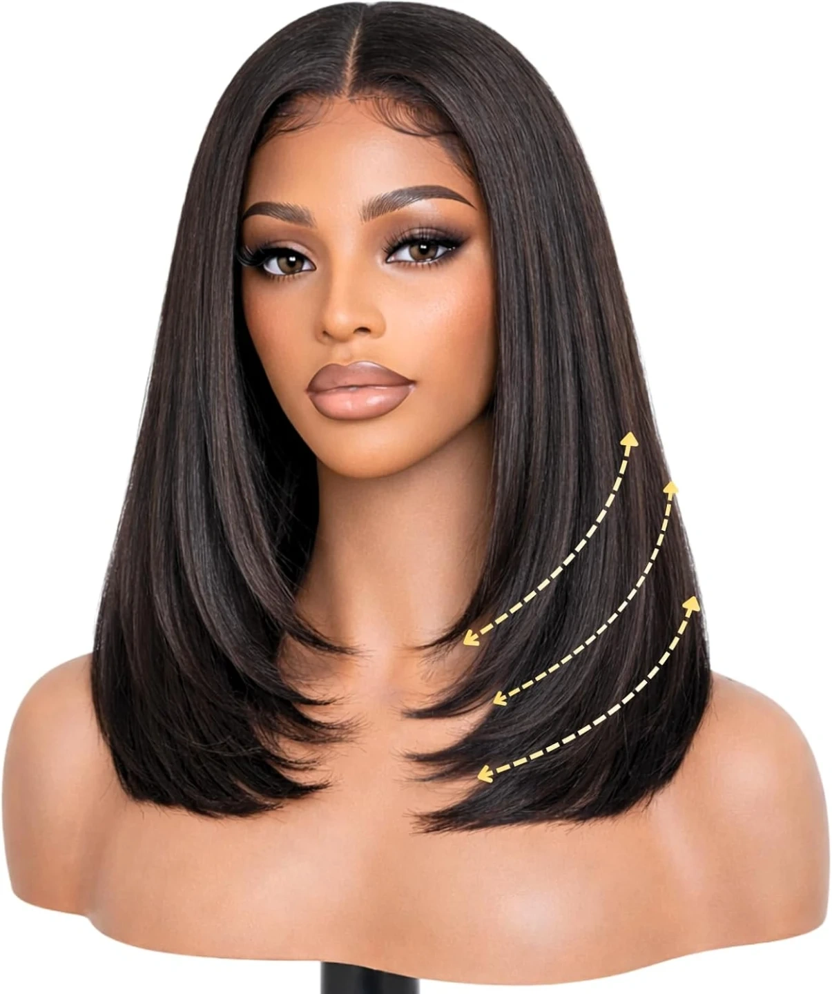 【Upgrade Glueless Drawstring Design】5x5 Layered Cut Yaki Straight Bob Drawstring Wig Human Hair with a Adjust Drawstring. Can be Adjusted to Fit Most Head Sizes Securely. Aaverage cap size(18''-24''). Make Gluess Wig Human Hair Install in 3s. Perfect for Those Who Want a Quick Install. And Head Comfortable & Security All Day.