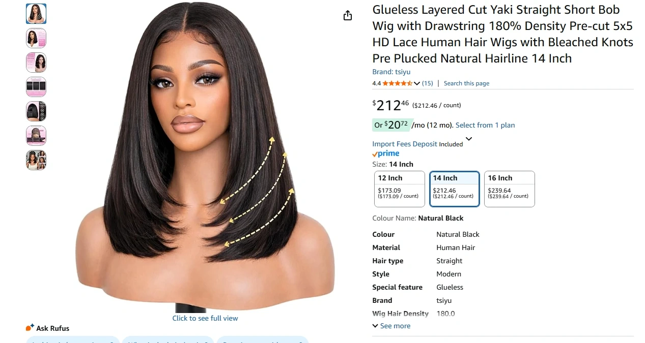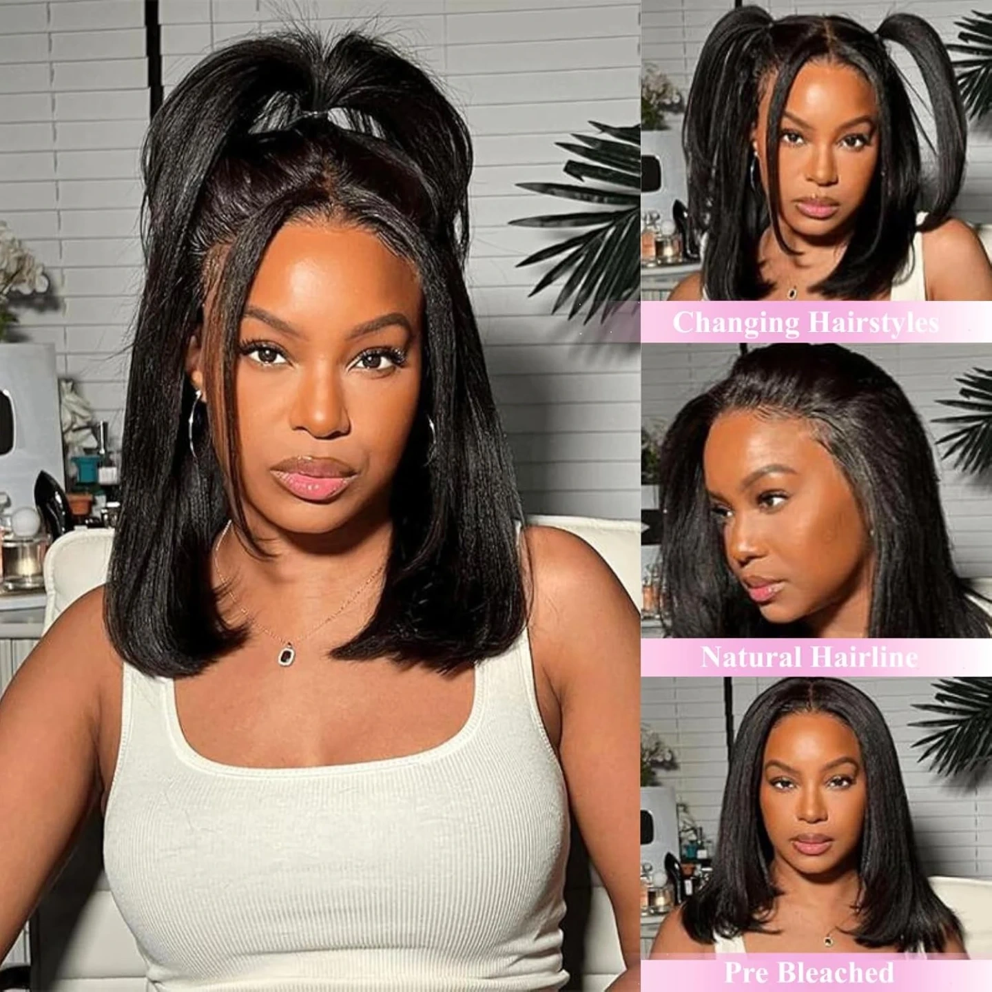 Glueless Layered Cut Yaki Straight Short Bob Wig with Drawstring 180% Density Pre-cut 5x5 HD Lace Human Hair Wigs with Bleached Knots Pre Plucked Natural Hairline 14 Inch, Brand New in the Box/Sealed