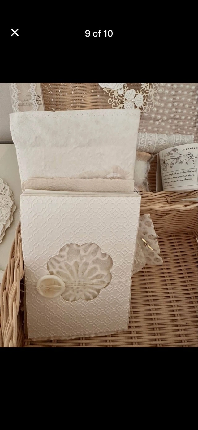 Imported from Pretty Happy Paperie in Indonesia. Beautiful minimalist journaling supplies. Filled with curated crafting & journal items. Envelopes contain more items: vintage papers, labels, beautiful fabrics, stickers, rub-on transfers, washi tape, and doilies. Gorgeous pastel colours. New condition. Cashless payment accepted. Cash accepted. Curbside pickup available.