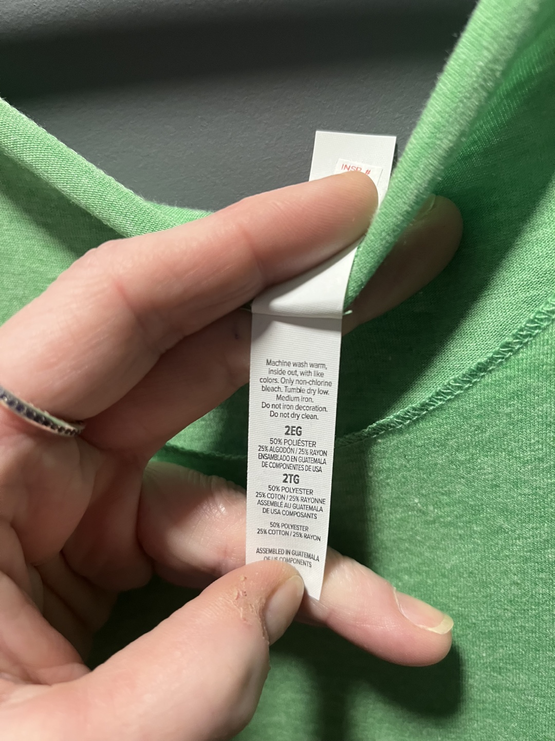 Women's light green tank top. Features a fun graphic. Relaxed fit. 50% polyester, 25% rayon, 25% cotton. Machine wash.