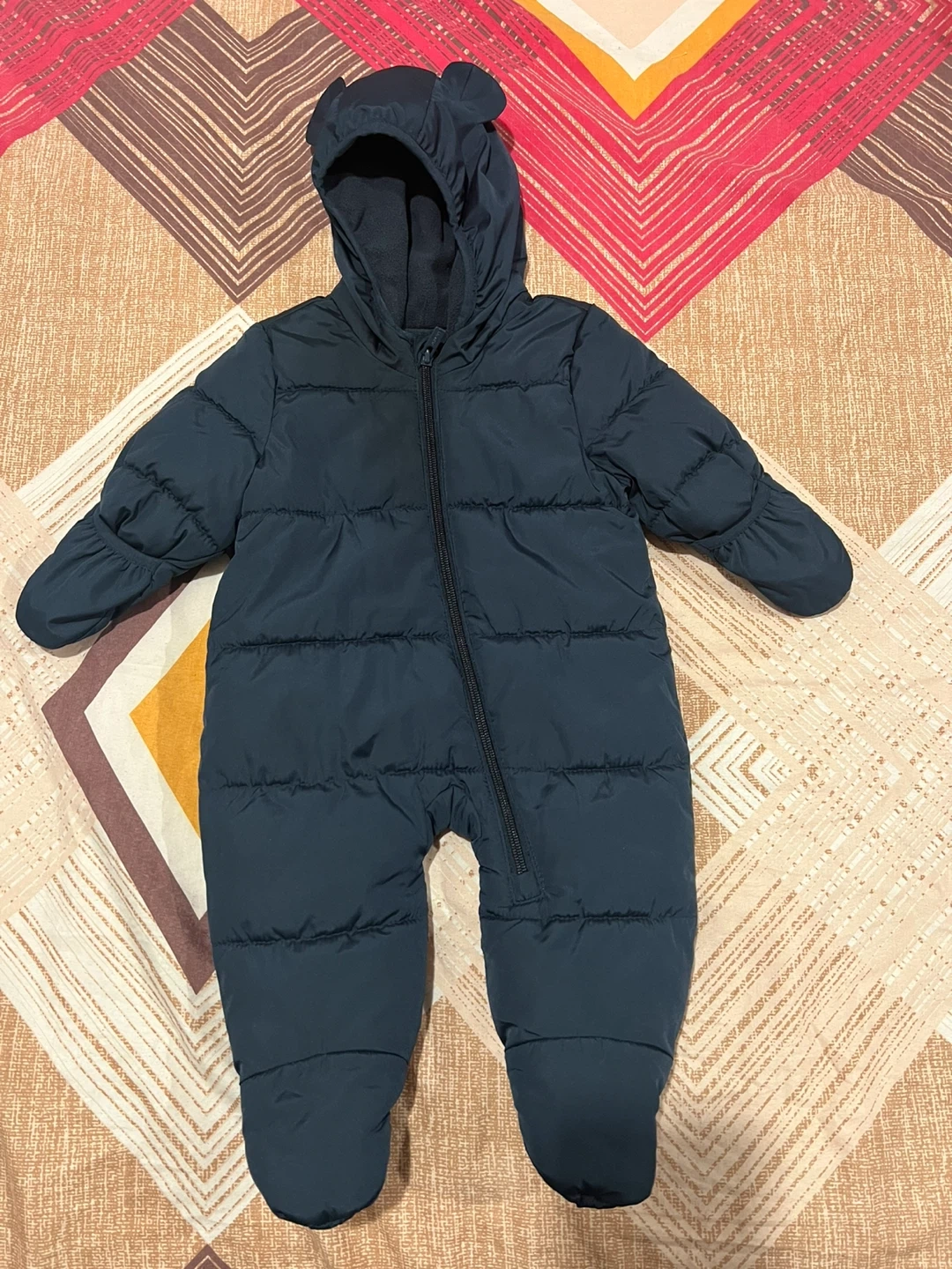 Here's a super cute Old Navy baby snowsuit, perfect for keeping your little one warm this winter! It's in great shape and ready for some snowy adventures.