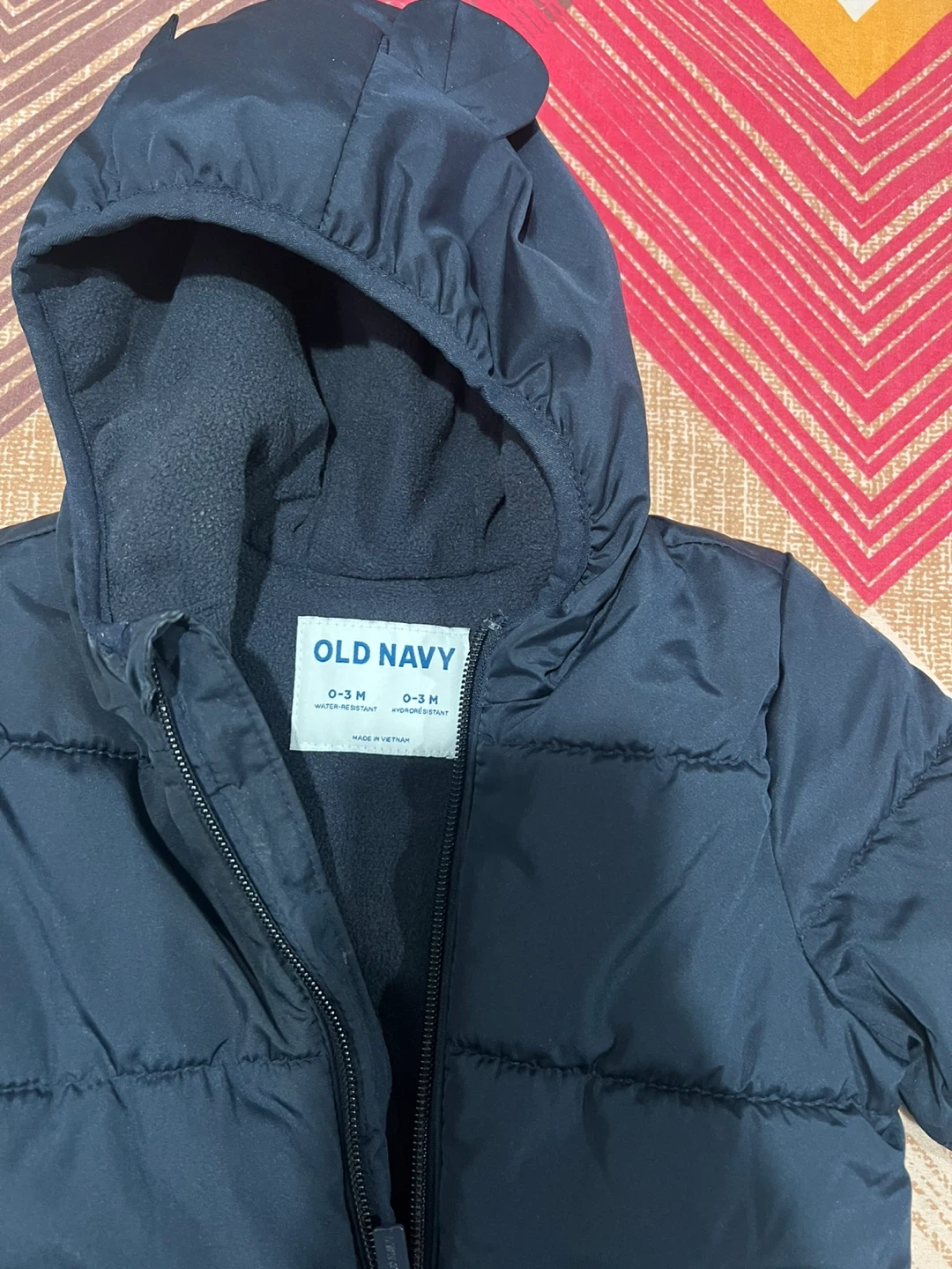Here's a super cute Old Navy baby snowsuit, perfect for keeping your little one warm this winter! It's in great shape and ready for some snowy adventures.