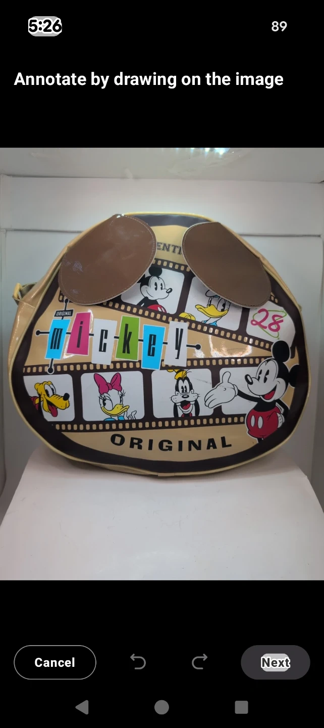 Buy & SellMickey & Friends Original Tan BagMickey & Friends Original Tan Bag$55Tan shoulder bag featuring Mickey Mouse and friends. It's made of a shiny, patent-like material. Perfect for carrying essentials!ConditionLike newWHERE TO MEETpizzas pizza front of PlazaView MapSELLERverifiedChristineL'amoreaux1185 reviews0 chats·0 favorites·2 viewsSEND CHAT TO SELLERHi Christine! I’m interested in your listing.Hi Christine! I’m interested in your listing.Get the Karrot app to chatSign In to chat