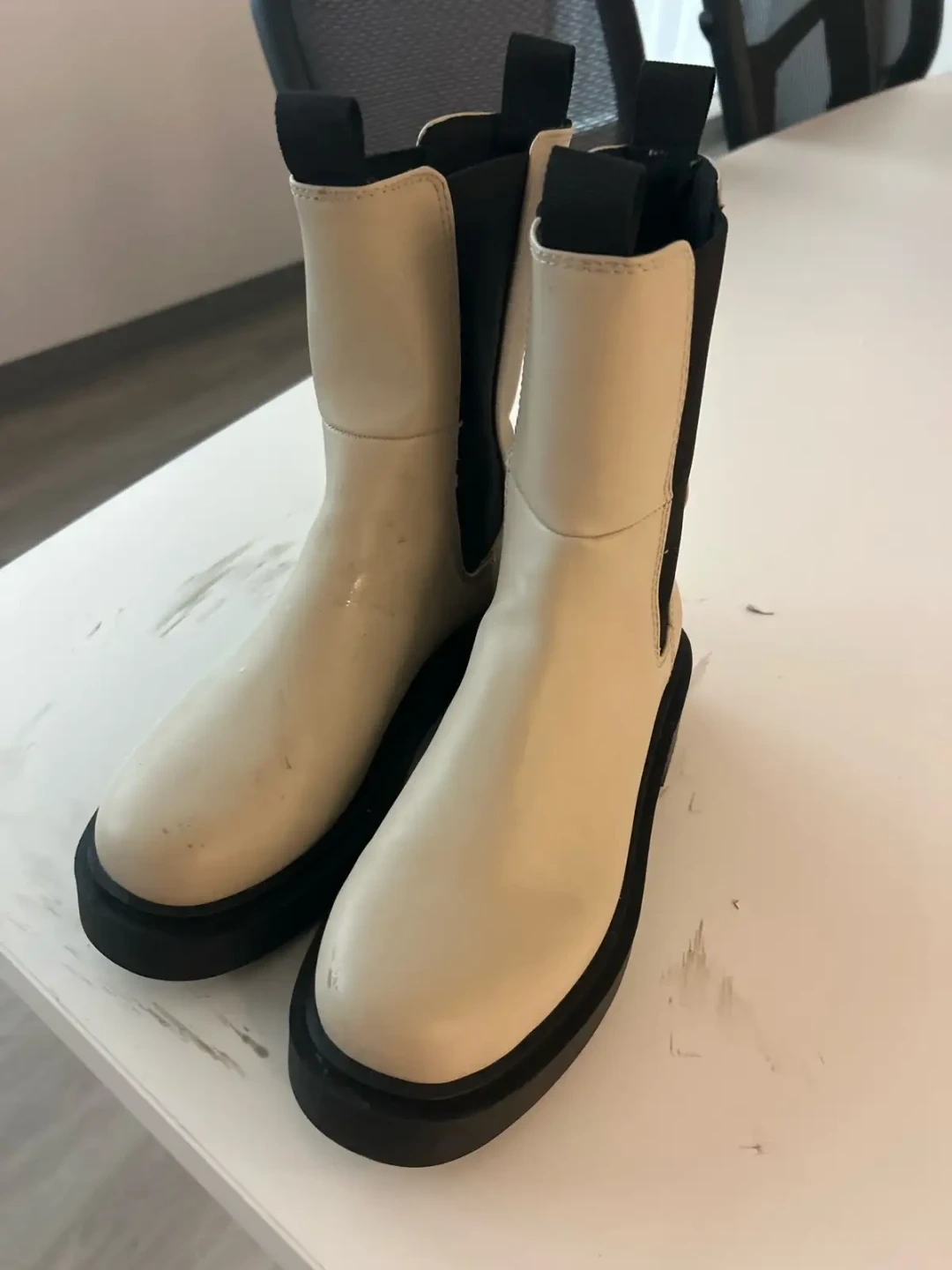 Cream Chelsea Boots with Black Sole Women's size 9