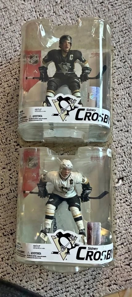 Up for sale are McFarlane Sidney Crosby Pittsburgh Penguins Variant Black Jersey and White Jersey NHL Series 16. Bubbles are yellowing.