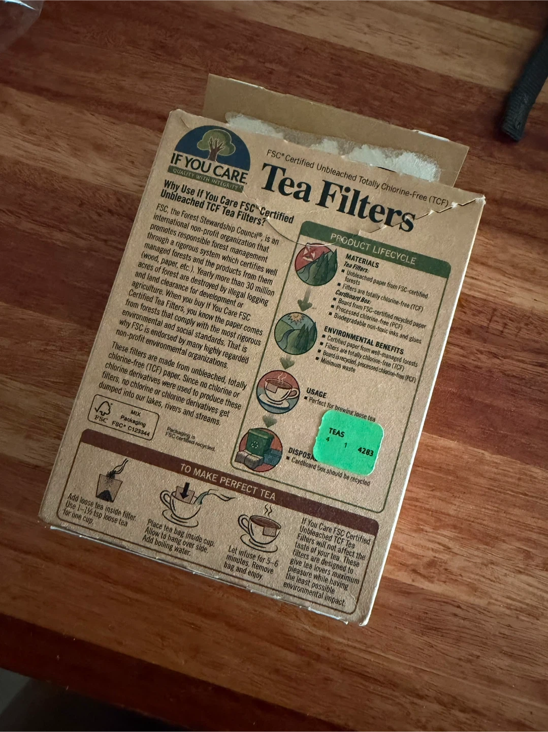 IF YOU CARE offers unbleached, totally chlorine-free (TCF) tea filters. These filters are made from FSC-certified paper and are suitable for single cups. The package contains 100 filters in a short size. Barely used any.
