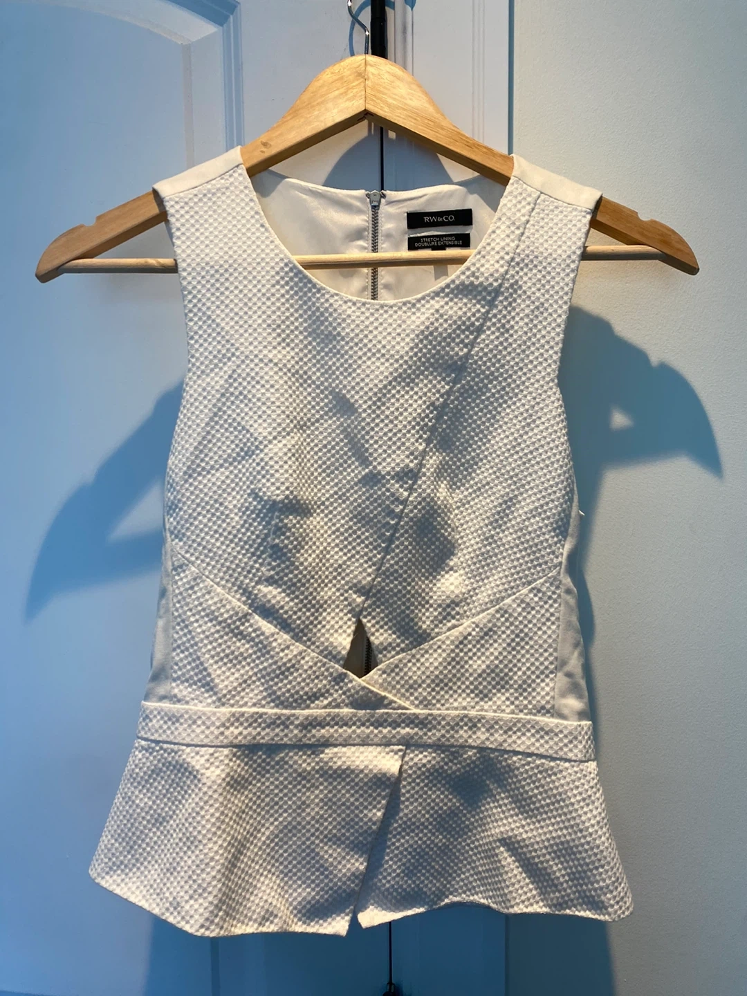 RW&Co formal top white and nice fitted top it just doesnt look flattering on me for my skin and body type thats why im selling but great texture and quality.