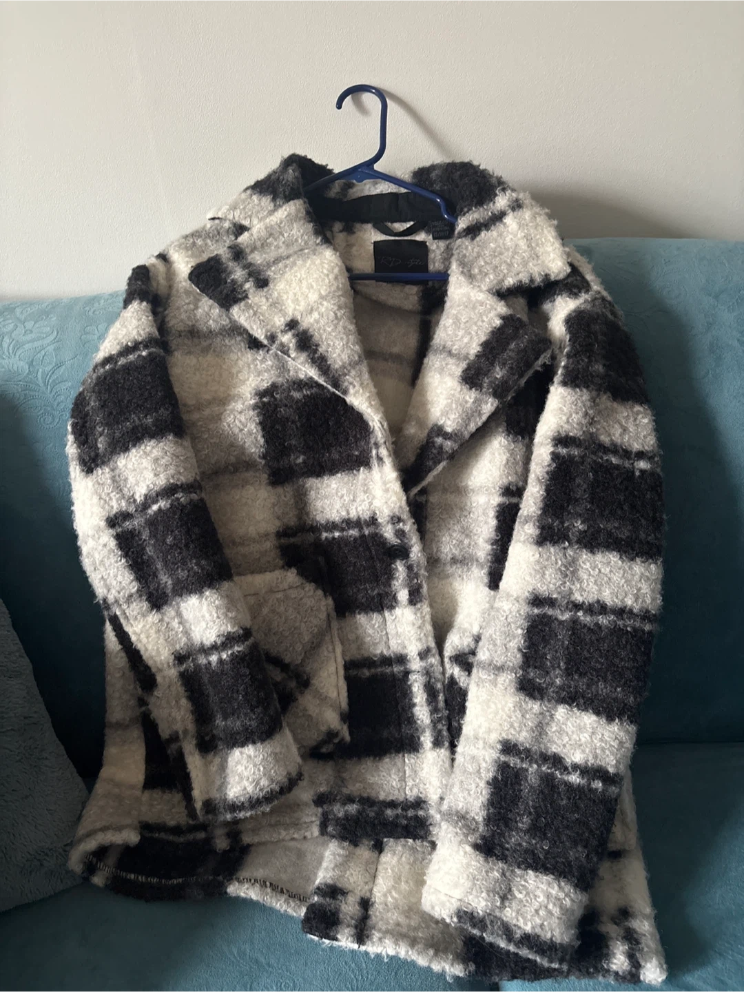 Cozy RW&CO. plaid boucle jacket, perfect for layering! It's in great condition and ready for a new home