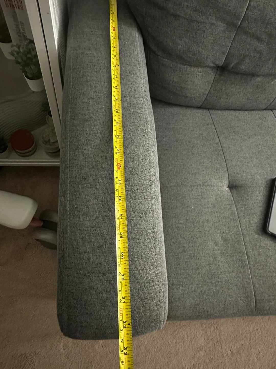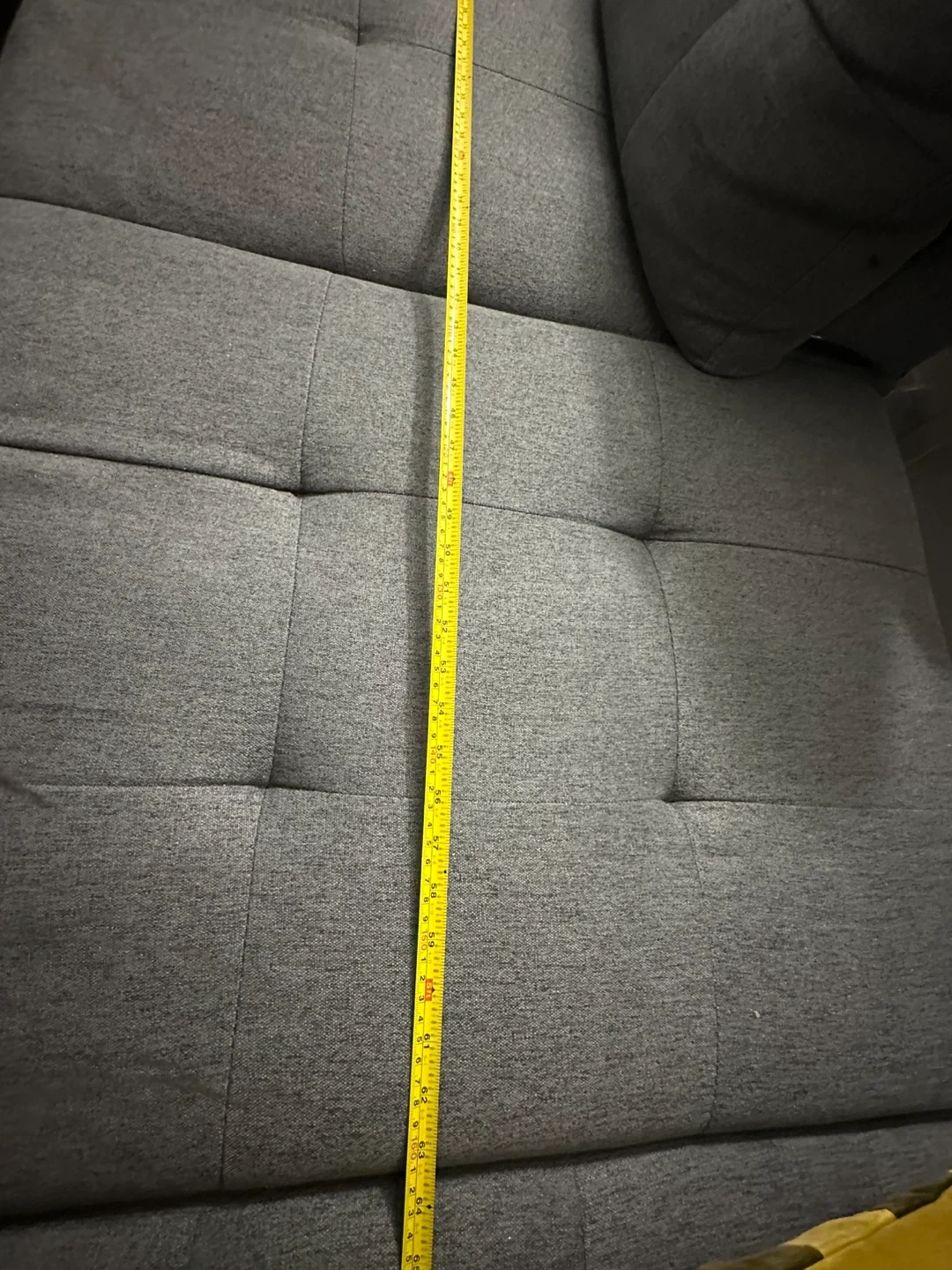Gray fabric couch in good overall condition, perfect for a living room or basement setup. With built-in storage to keep blankets, pillows, or other items tucked away. One section has slight sagging from regular use, but it doesn’t affect overall comfort. Clean and well cared for. Great value for the price!