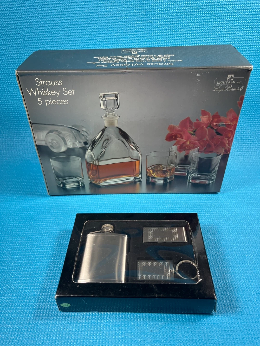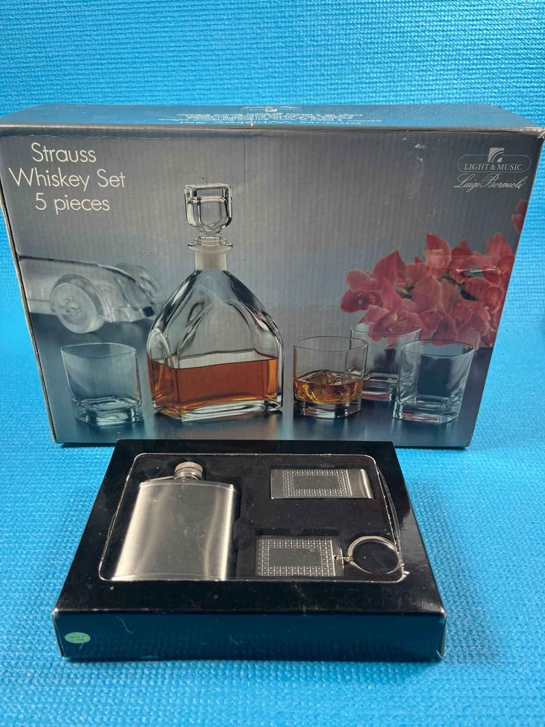 Elevate your home bar with this stunning 5-piece Luigi Bormioli "Strauss" Whiskey Set. Made in Italy, this lead-free SON.hyx crystal is famous for its diamond-like clarity and break-resistant durability.The set features a heavy-bottomed architectural decanter and four matching rocks glasses—perfect for showing off your favorite bourbon or scotch.🔥 LIMITED TIME BONUS: I am including a Stainless Steel Travel Flask Gift Set (Flask, Funnel, and Keyring) absolutely FREE with this purchase! Whether you’re hosting at home or heading out, this bundle has you covered.