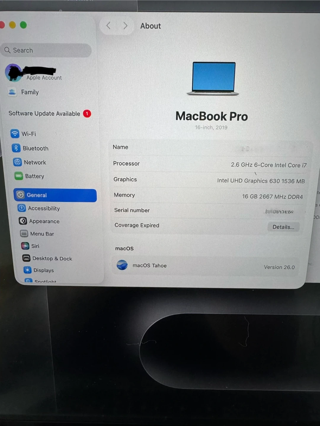 This is a 2019 Apple MacBook Pro with a 16-inch display. It's powered by a 2.6 GHz 6-Core Intel Core i7 processor and 16 GB RAM with 512 GB SSD.