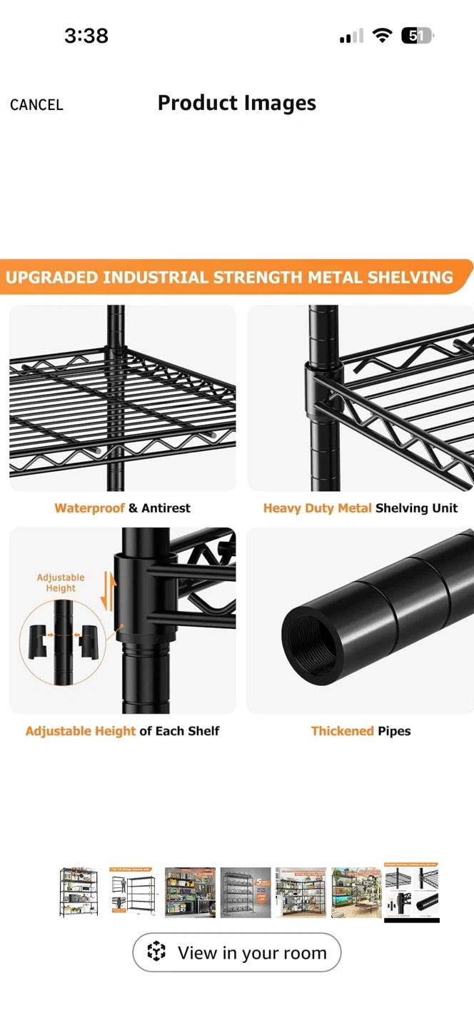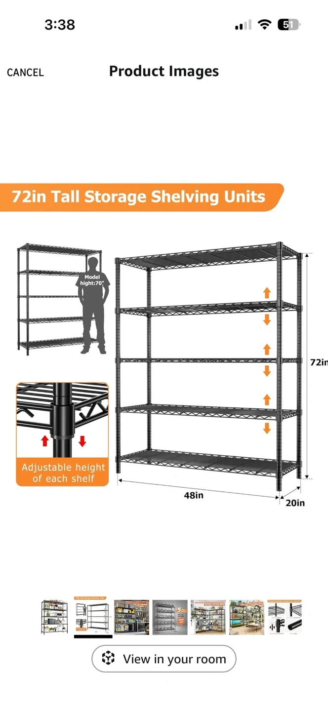 This is a new an still in the box ROOMTEC heavy-duty metal shelving unit with 5 tiers. Each shelf's height is adjustable. The unit is waterproof and anti-rust with thickened pipes.