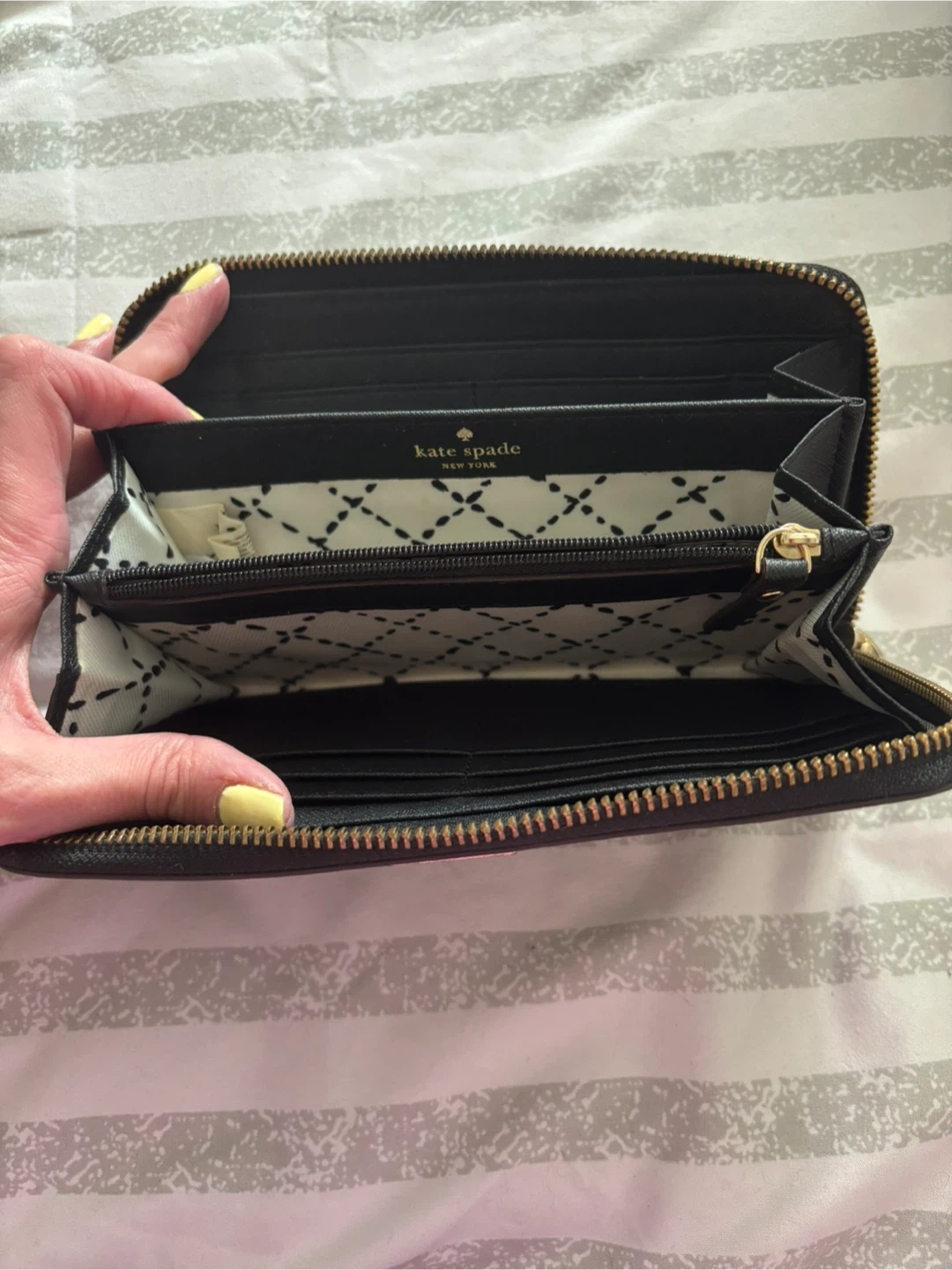 Buy & SellKate Spade New York zip-around walletKate Spade New York zip-around wallet$50Kate Spade zip-around wallet. Black saffiano leather. Like new good condition.ConditionLike newWHERE TO MEETPort ElginView MapSELLERverifiedAmandaPort Elgin822 reviews0 chats·0 favorites·4 viewsSEND CHAT TO SELLERHi Amanda! I’m interested in your listing.Hi Amanda! I’m interested in your listing.Get the Karrot app to chatSign In to chat