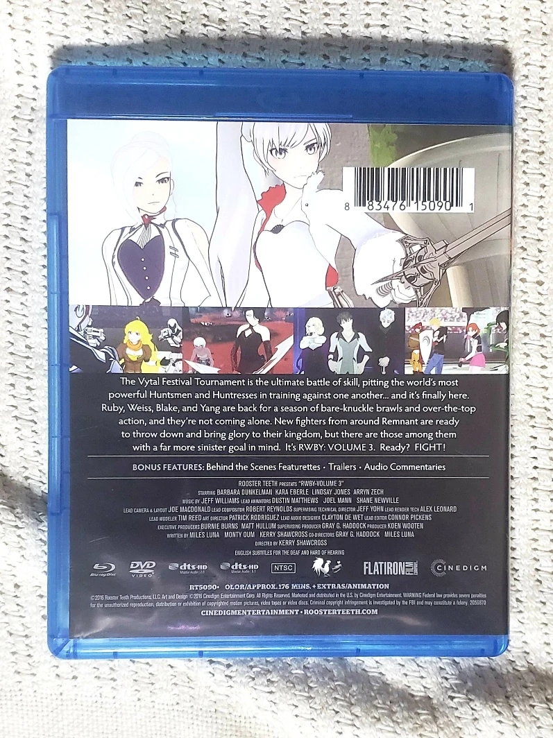 38A young hero, an exalted heiress, a troubled rogue, and a party girl... These are the four members of RWBY, a team brought together and trained for the sole purpose of combatting the rampant evils that plague the fantastic world of Remnant. From Rooster Teeth, the studio that created Red Vs. Blue and Achievement Hunter, this is the team's attempt to create a full-length animated series. Included in this bundle are the first 4 seasons of the RWBY series. Season 1 is a DVD, all the rest are Blu-Ray. This series is NOT available for streaming online due to a merger that killed Rooster Teeth. These discs are perhaps the only chance you have to watch the show. Even then, these are incredibly limited since only so many were put on the market. The discs and original covers are all included and in great shape. You will need a Blu-Ray player or older generation console to watch them. Makes a perfect gift for the RWBY lover in your family. We accept Interact e-Transfer and PayPal, as well as cash. NO SHIPPING and NO DELIVERY. Curbside pickup ONLY. If you are interested in purchasing this product or have any further inquiries, please send us a direct message.
