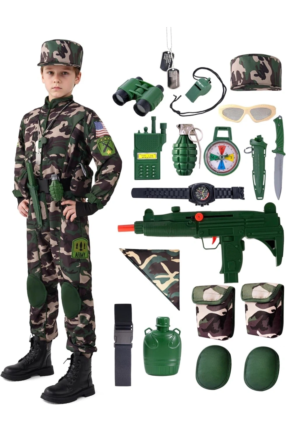 Get ready for action with this Army Force costume! It comes with everything your little soldier needs for imaginative play, including the jumpsuit, hat, and lots of fun accessories. Size M, perfect for kids aged 8-10 years (4'0"-4'7" / 122-140 cm).