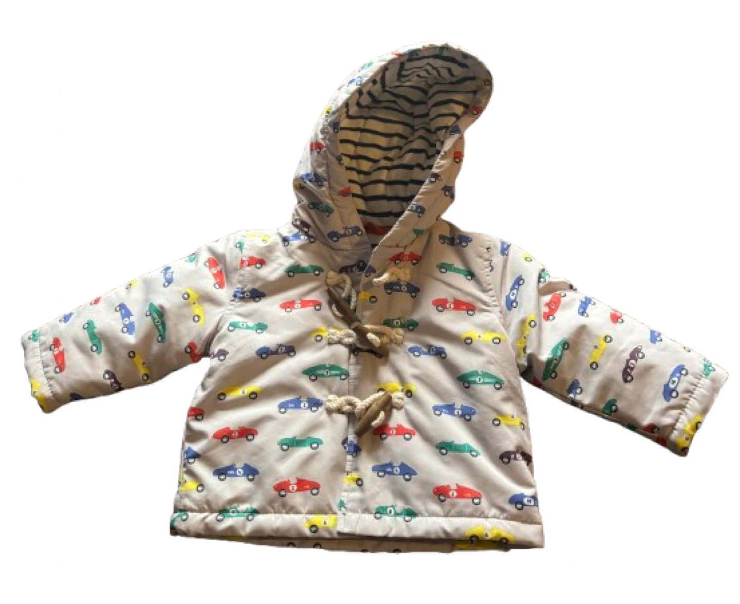 🚗 Baby Boden Car‑Print Toggle Jacket — 3–6M