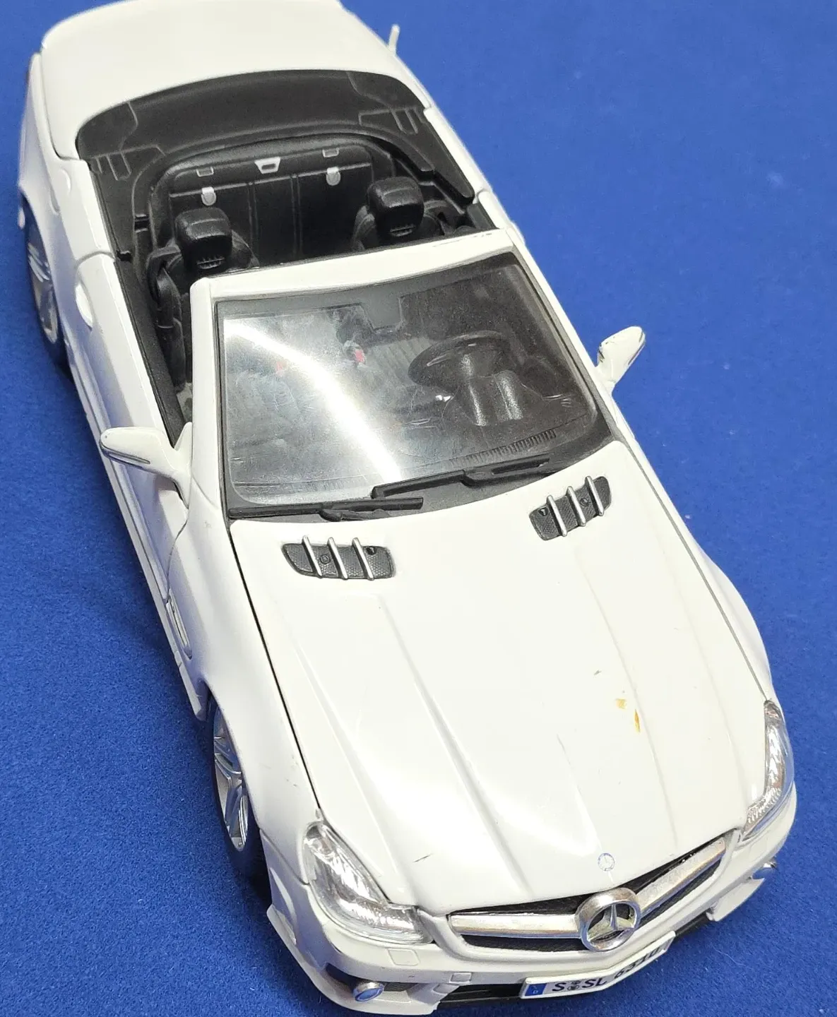 Selling a white Mercedes-Benz SL diecast model car. It has some minor signs of use, but is overall in good condition. Perfect for collectors or as a display piece!