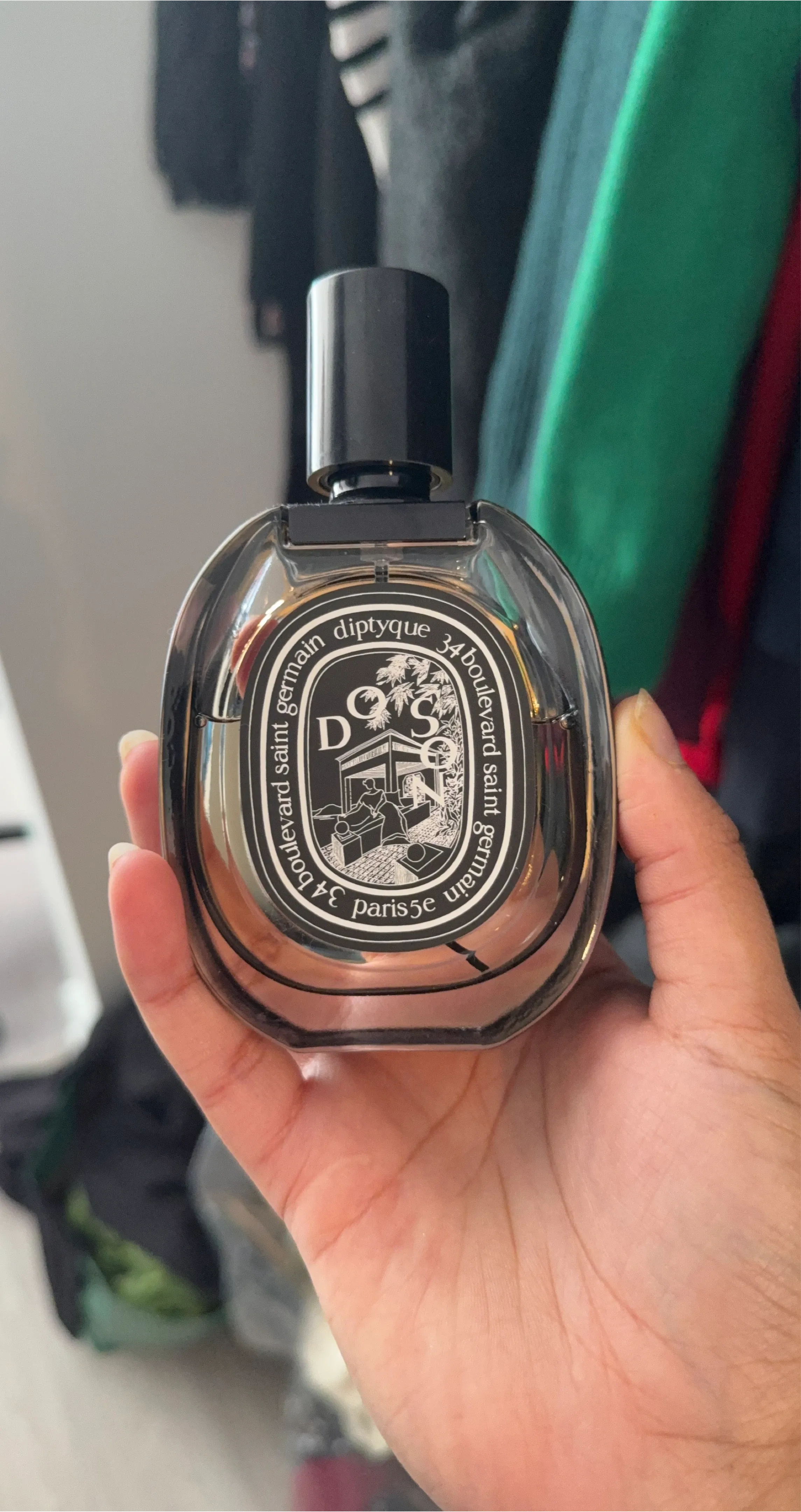 This is Diptyque Do Son Eau de Parfum. It's a 75ml bottle, providing 2.5 fl.oz. The fragrance is designed for women and men, with notes of tuberose, petitgrain, and musk. It's a strong scent with 6 hours of longevity.