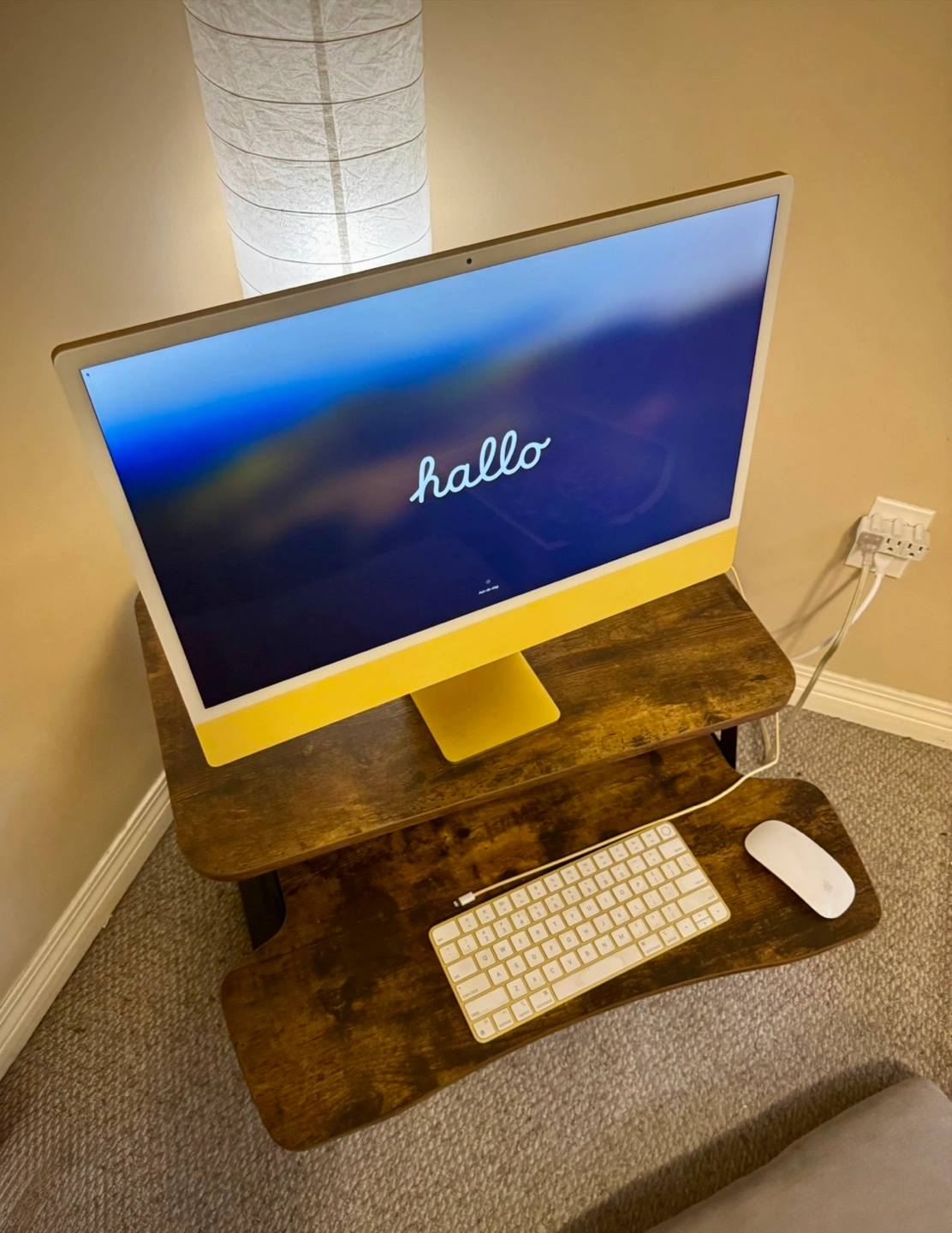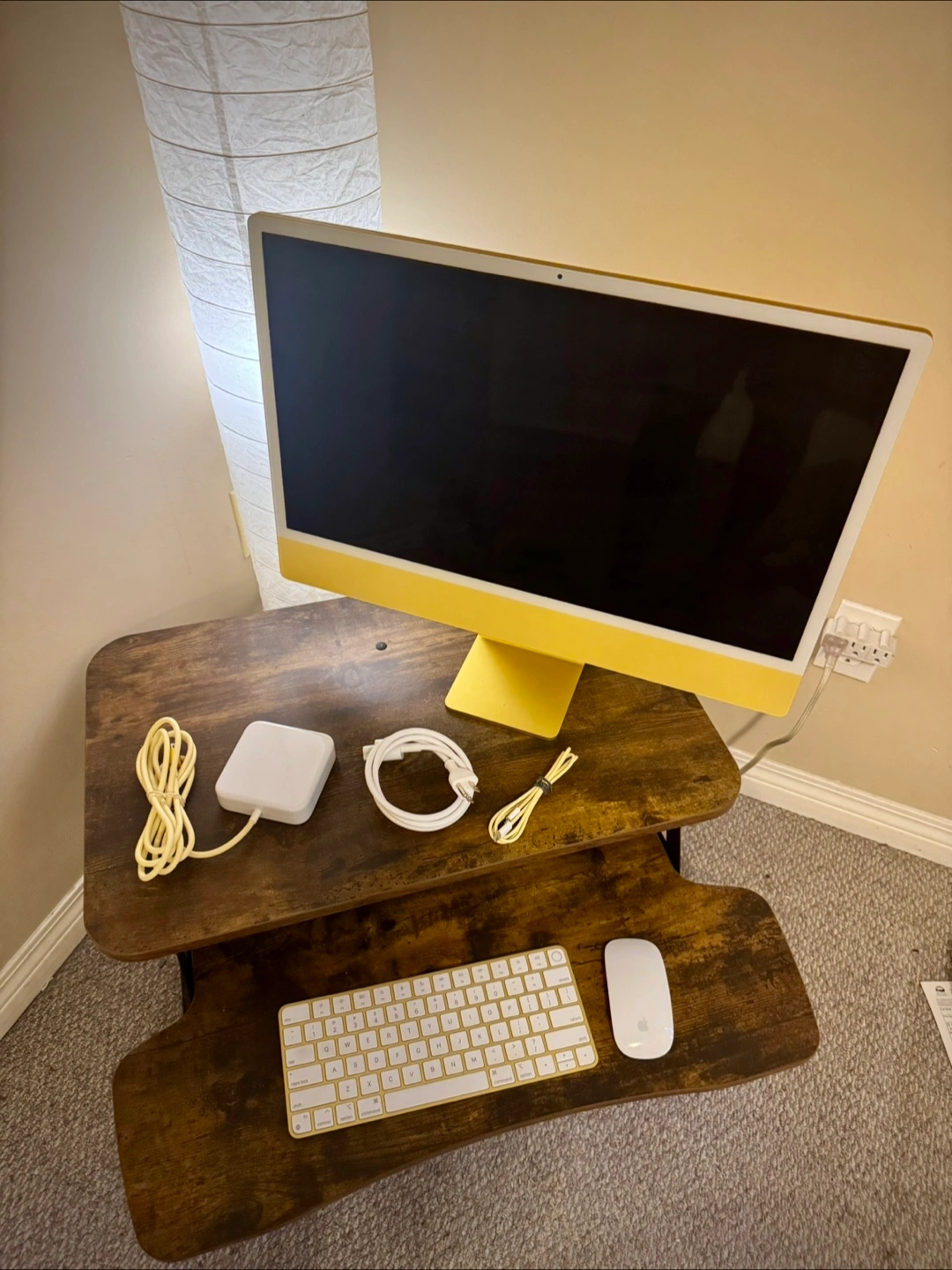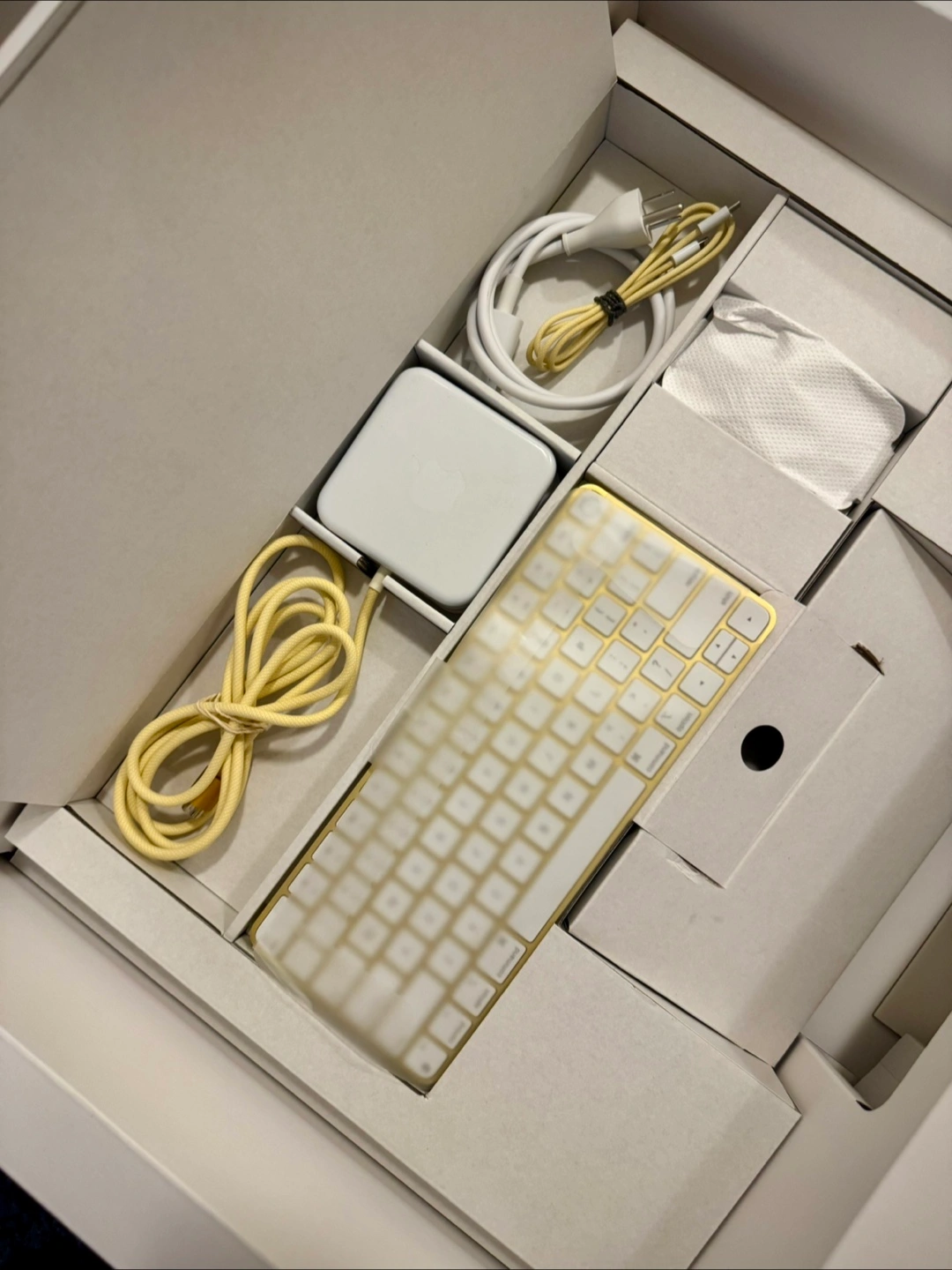 Been using Mac for three decades and as you can see in the photos I take very good care of my computers. No scratches no dirt, looks brand spanking new. I put it all back in the original box with covers and everything ready for a new owner, but you’re welcome to fire it up and sign in to check it out. It’s factory reset. A M1 with 2TB onboard SSD and 16GB of ram. Yellow colour with all the original cables, mouse and keyboard.
