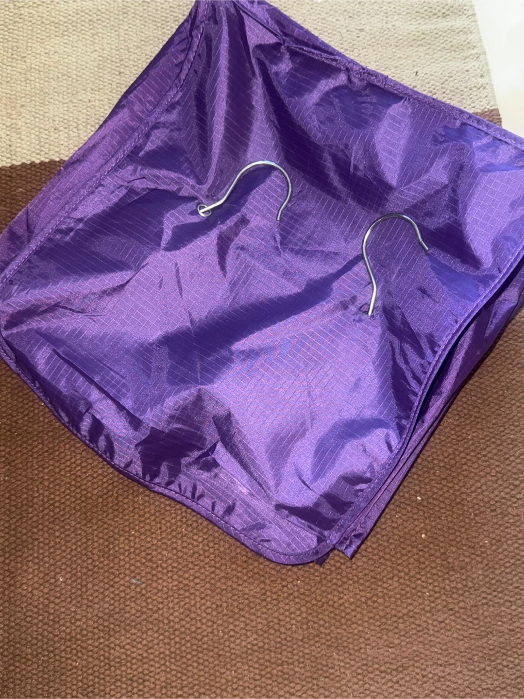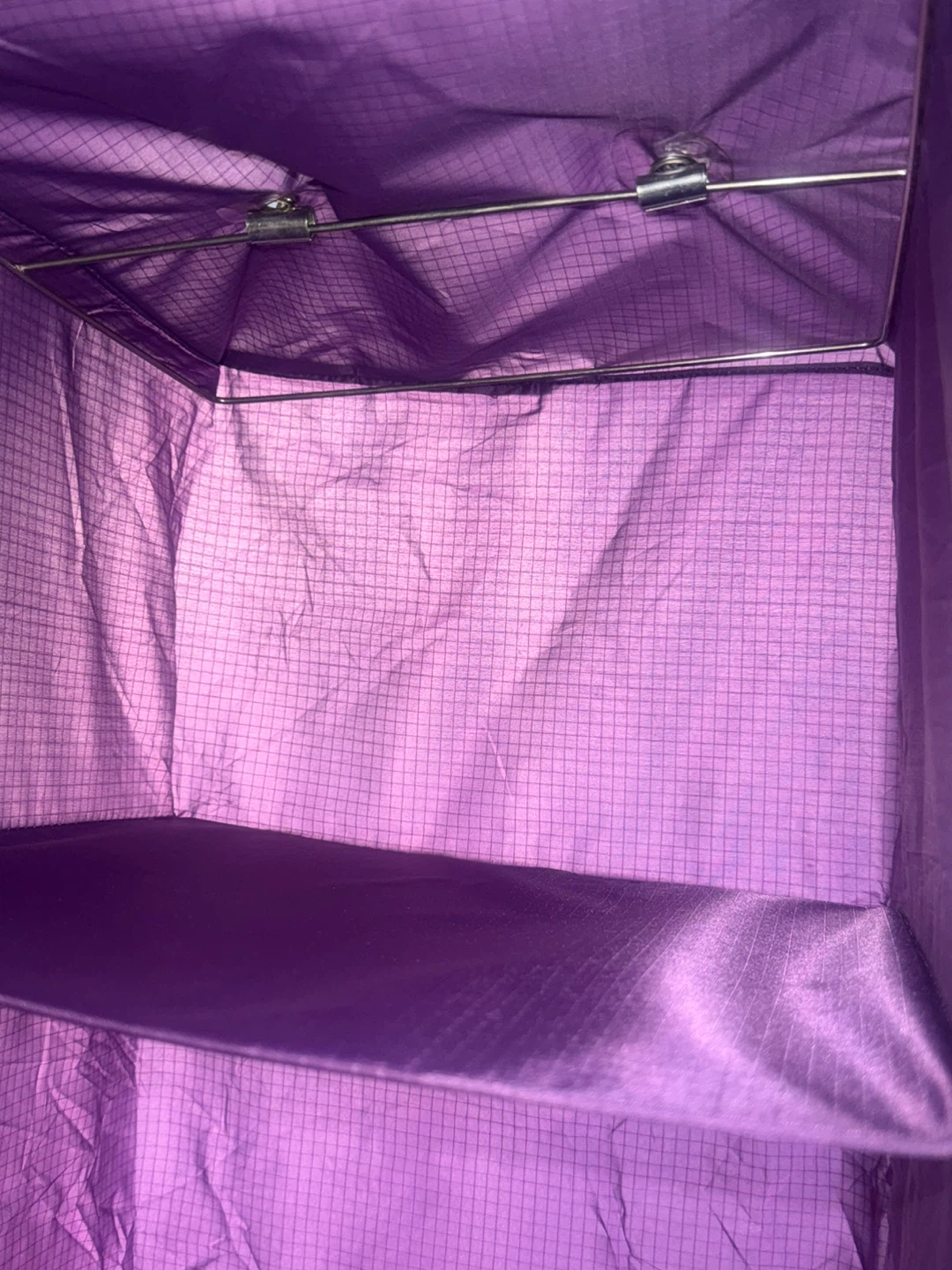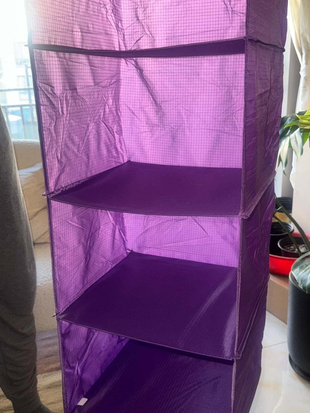 This is a purple hanging closet organizer. It features five shelves for storage. Pick up from queens elmhurst.