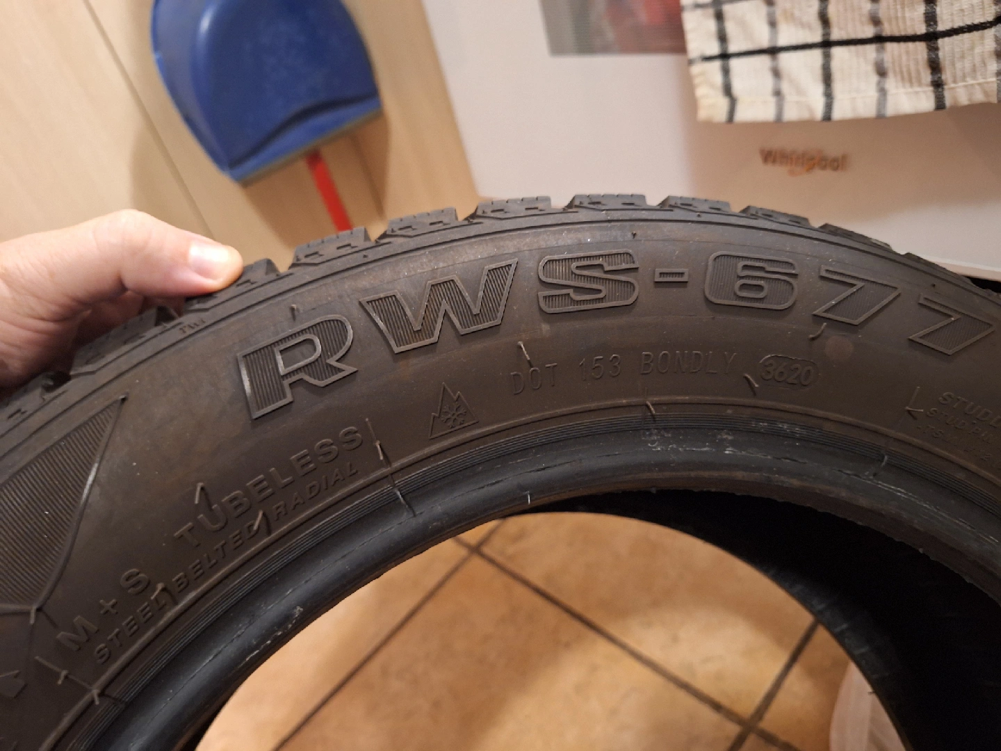 60Selling a used winter tire, marked RWS-677. The size is 205/55R16. It's a tubeless radial tire with a steel-belted design. (Like New-Excellent Condition) Price Per Tire