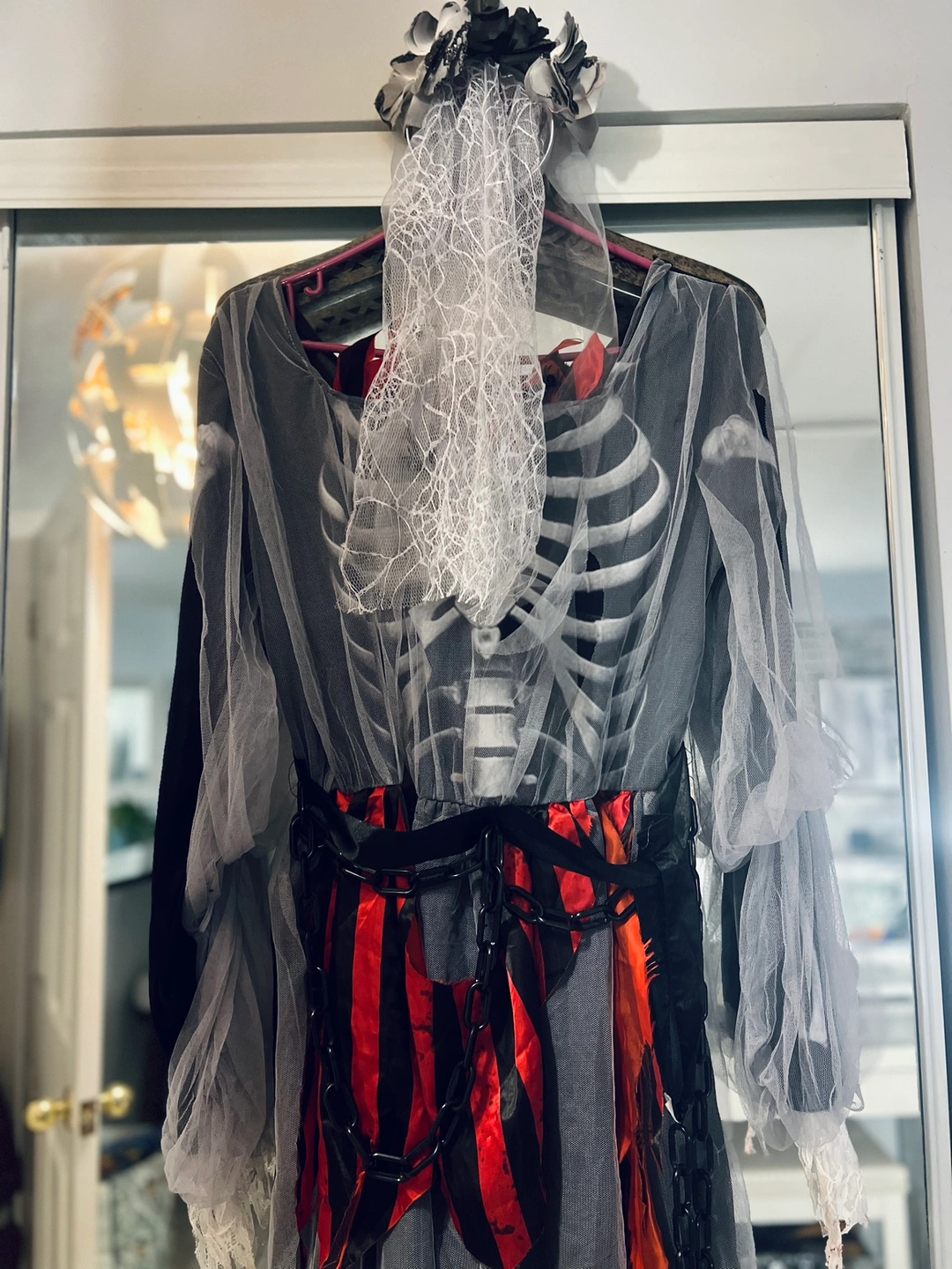 Skeleton Zombie Bride Costume with Spooky Veil Headband