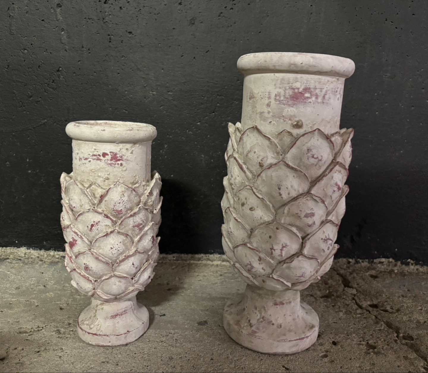 Selling a set of decorative vases shaped like pinecones. They have a unique, rustic look that would add charm to any room! They're in good condition and ready for a new home