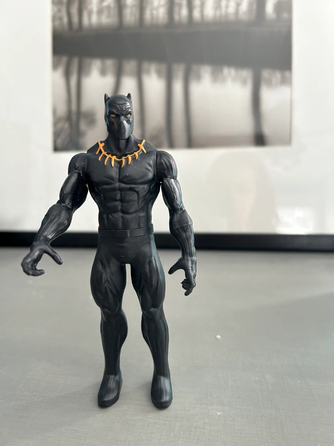 This set includes five action figures: Spider-Man, Captain America, Hulk, Iron Man, and Black Panther. They're made of plastic and are great for play or display. These figures are ideal for any Marvel fan!