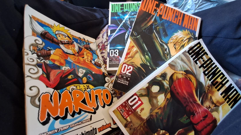 Collection of graphic novels. Includes Naruto Volume 1 and One Punch Man Volumes 1-3.