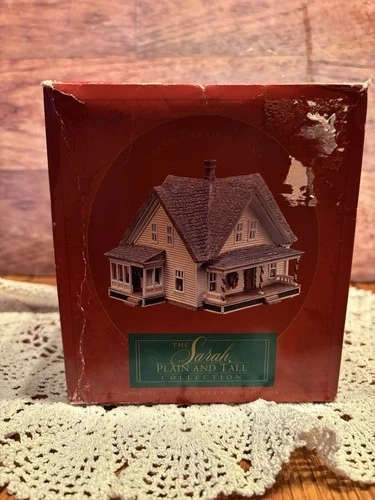 Capture the charm of a bygone era with the 1994 Hallmark Sarah's Prairie Home from the beloved Sarah's Plain and Tall collection. This nostalgic piece features a square design, mimicking the quaint architecture of the country. The beige and white house is crafted from plastic, highlighting the intricate details and vibrant hues that bring this village scene to life. The front porch is decorated for Christmas including a wreath on the front wall Designed to fit seamlessly into any room or existing collection, this original model reflects the quality and style of Hallmark's craftsmanship. It comes boxed, ready to be displayed or gifted, making it an ideal choice for collectors and enthusiasts of holiday and seasonal decor. Embrace the warmth and simplicity of Sarah's Prairie Home, a treasured piece from the 1990s.