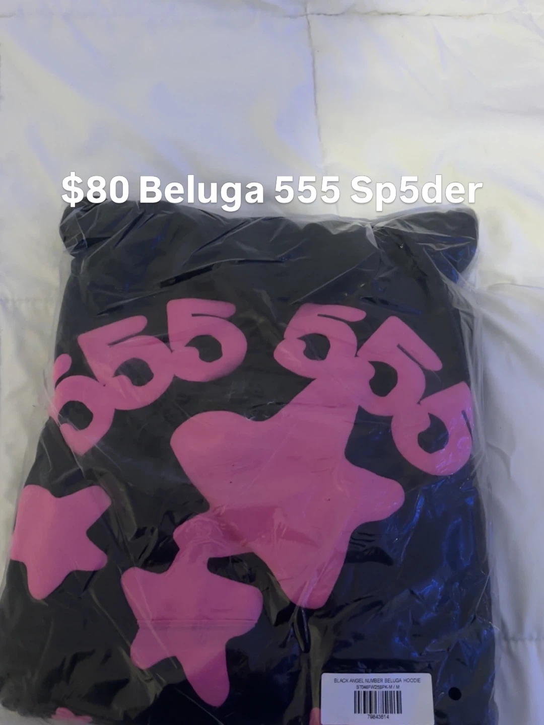 This is a Sp5der Beluga 555 hoodie in black with pink accents. It's a size medium. The material is 100% cotton with new tags on the inside of hoodie.