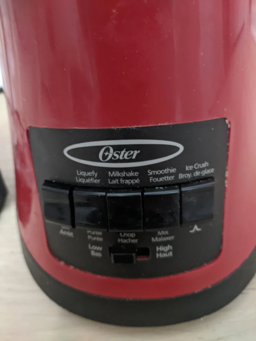 Selling a red Oster blender! It has settings for liquefying, making milkshakes, smoothies, and crushing ice. It's in great shape and ready to go.