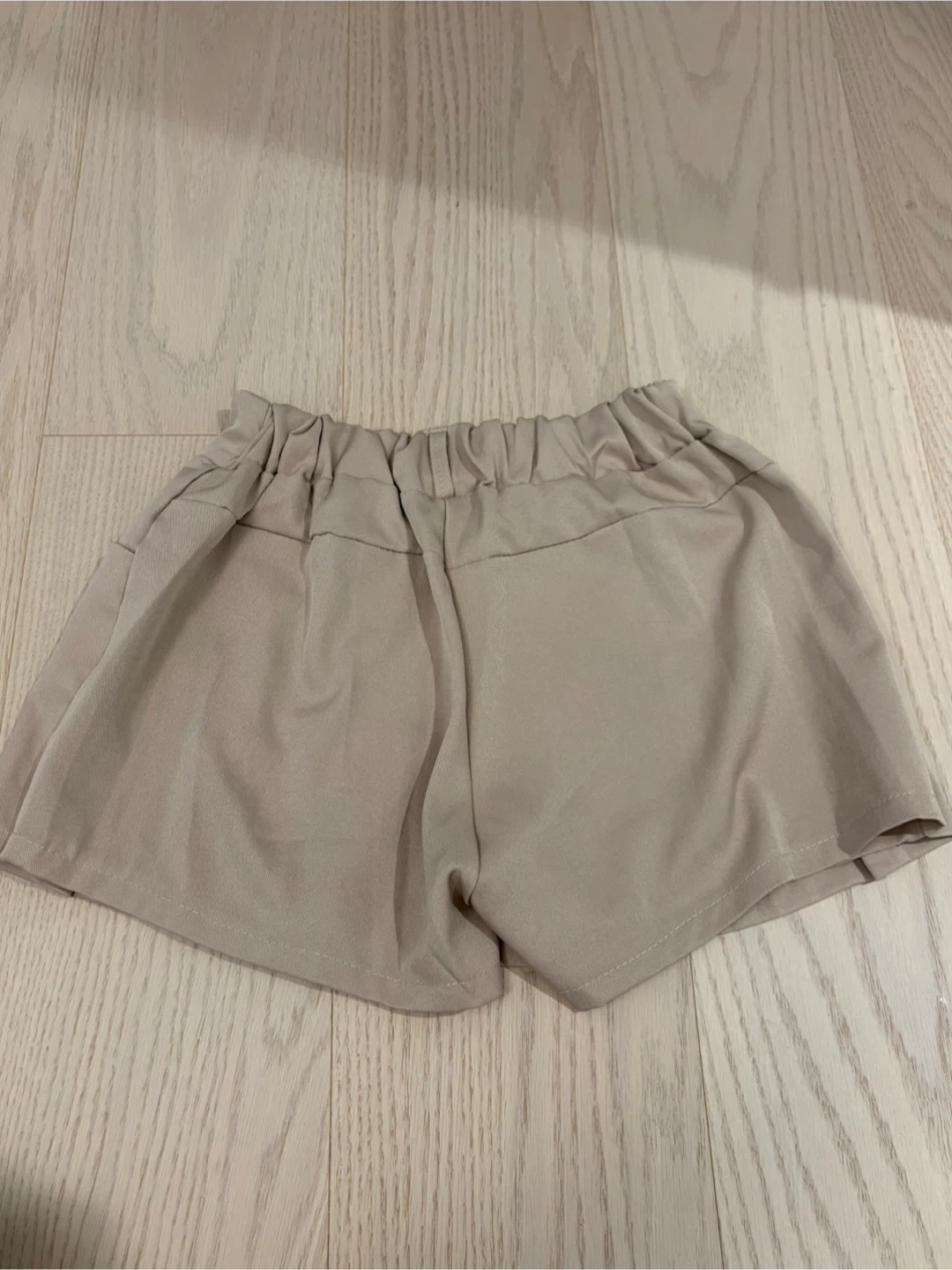 Selling a cute pair of beige shorts! They have an elastic waistband for a comfy fit. Measured lying flat, the waist is about 11 inches. These are in great condition and ready for a new home!