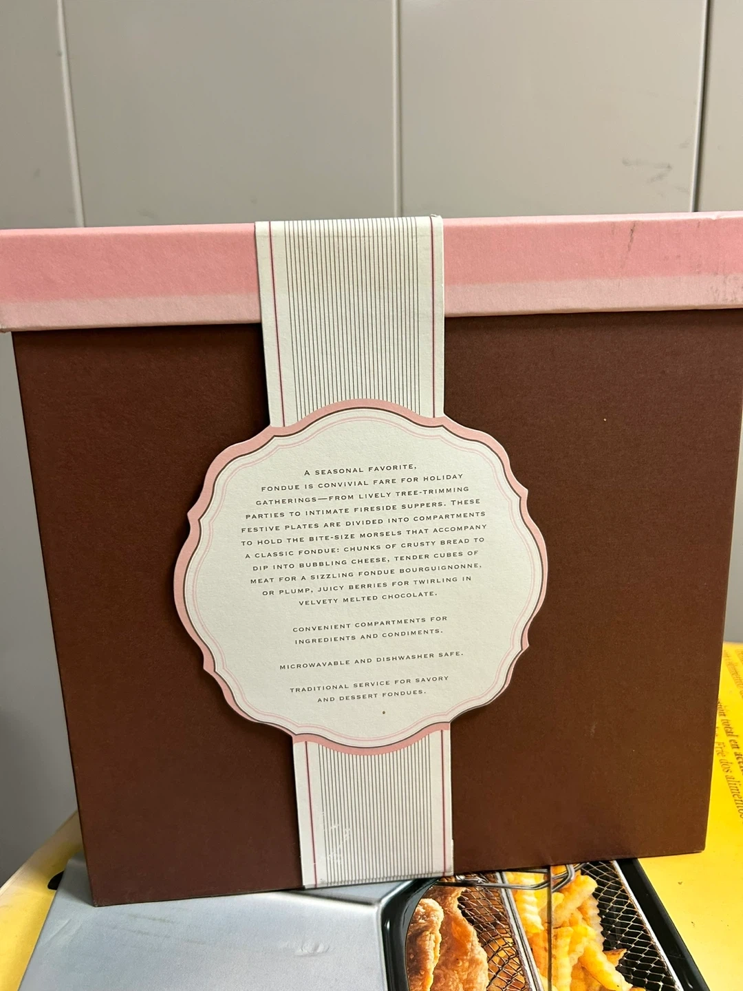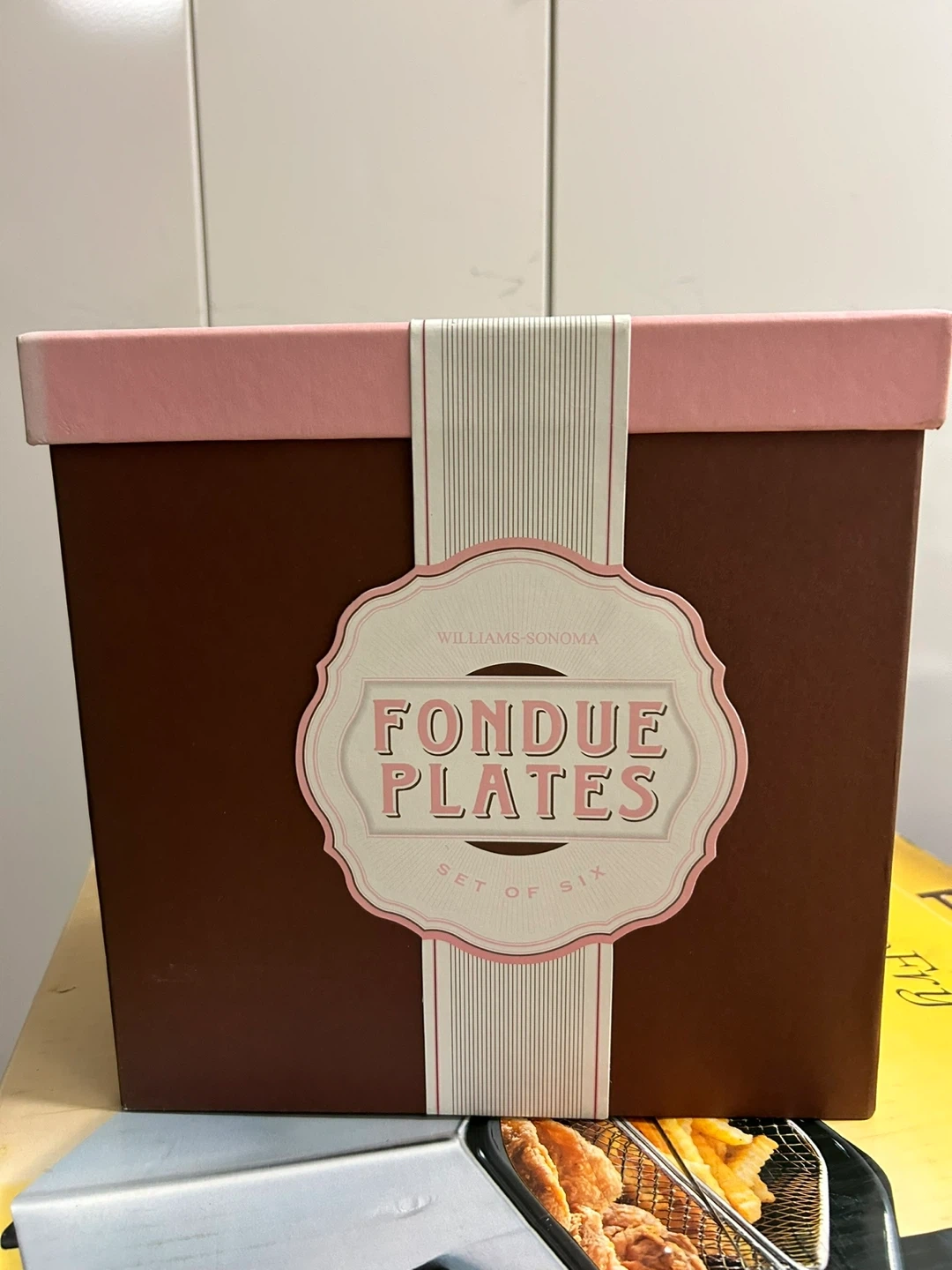 Selling a set of six Williams Sonoma fondue plates. These plates are perfect for holiday gatherings or intimate dinners. They are designed to hold the right amount of dippings for a classic fondue, chunks of crusty bread, or juicy berries. They are microwave and dishwasher safe and come in their original box