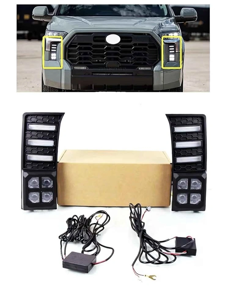 Front bumper LED fog lights with sequential turn signals, DRL, and driving light functions. Compatible with Toyota Tundra 2022-2025 models. These are Tundra accessories.