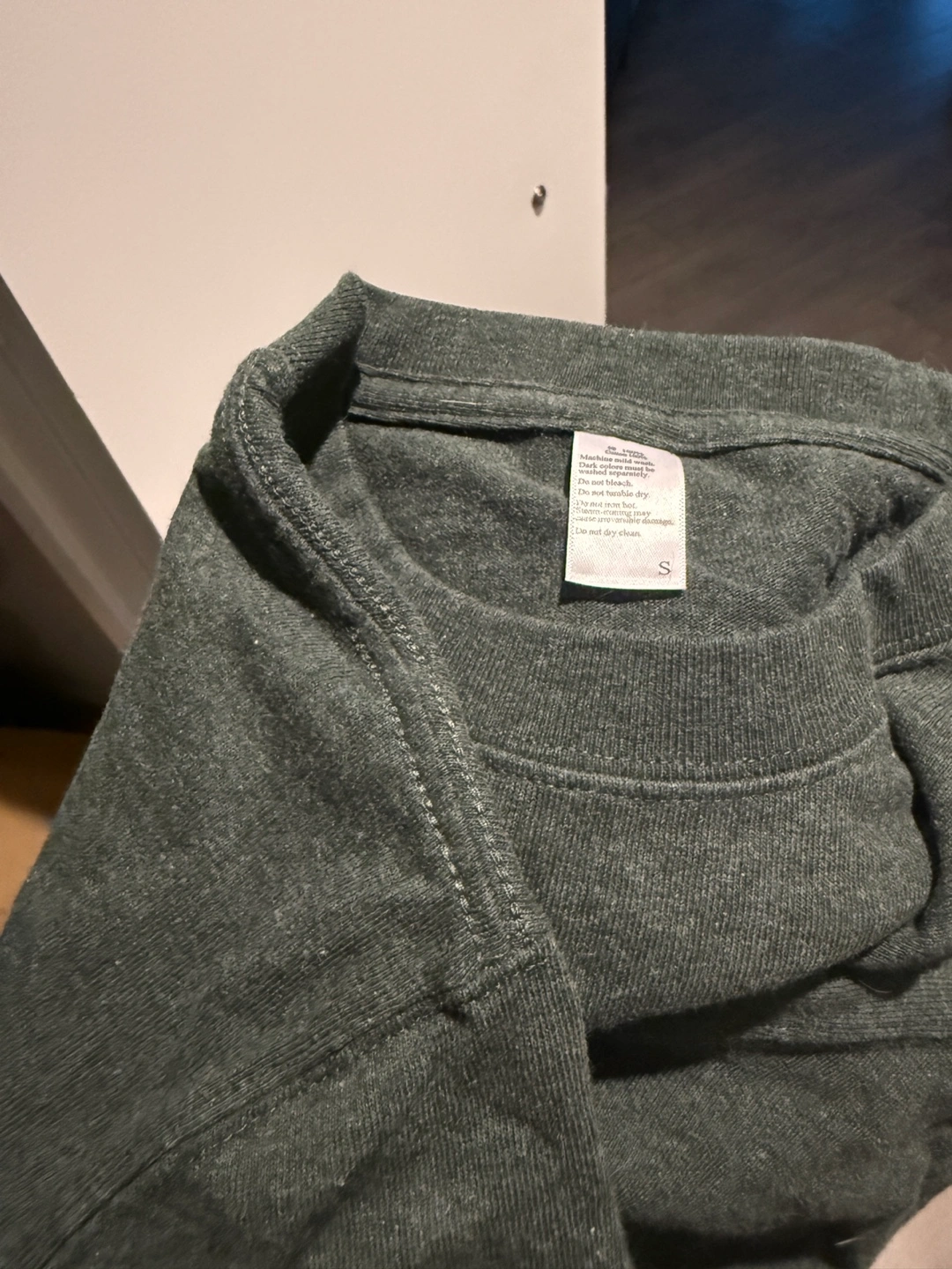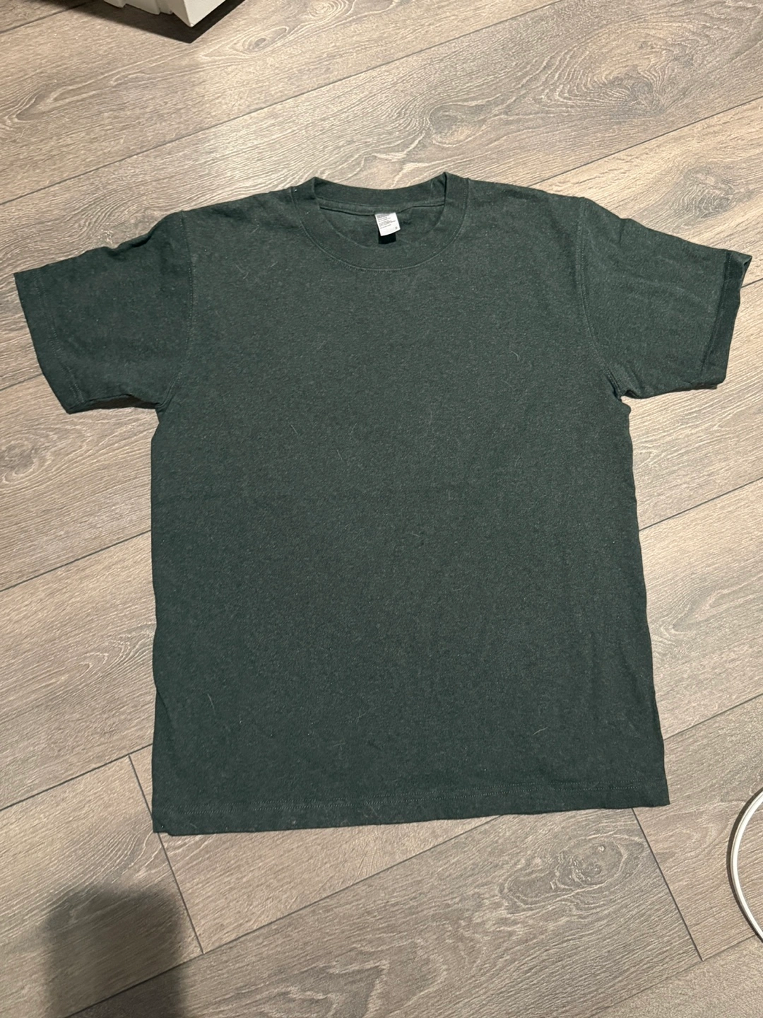 Gildan brand. Size small for Men,equivalent to Women size M. Dark green colour. Short sleeves. Crew neck
