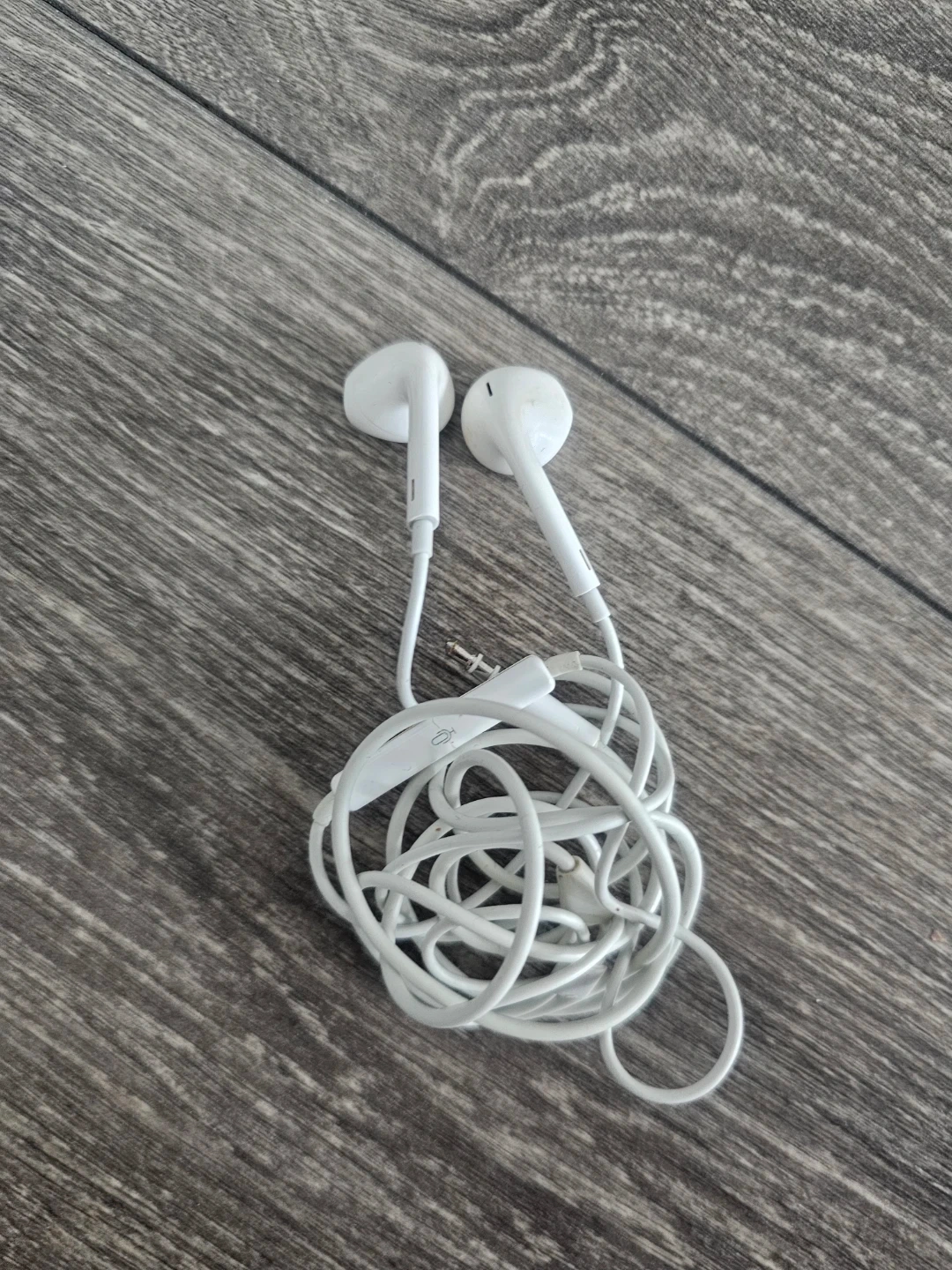 These are Apple EarPods with a 3.5mm headphone jack. They're white and come with an inline microphone and remote. Great for listening to music or taking calls!