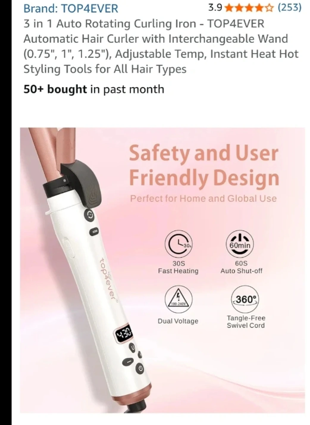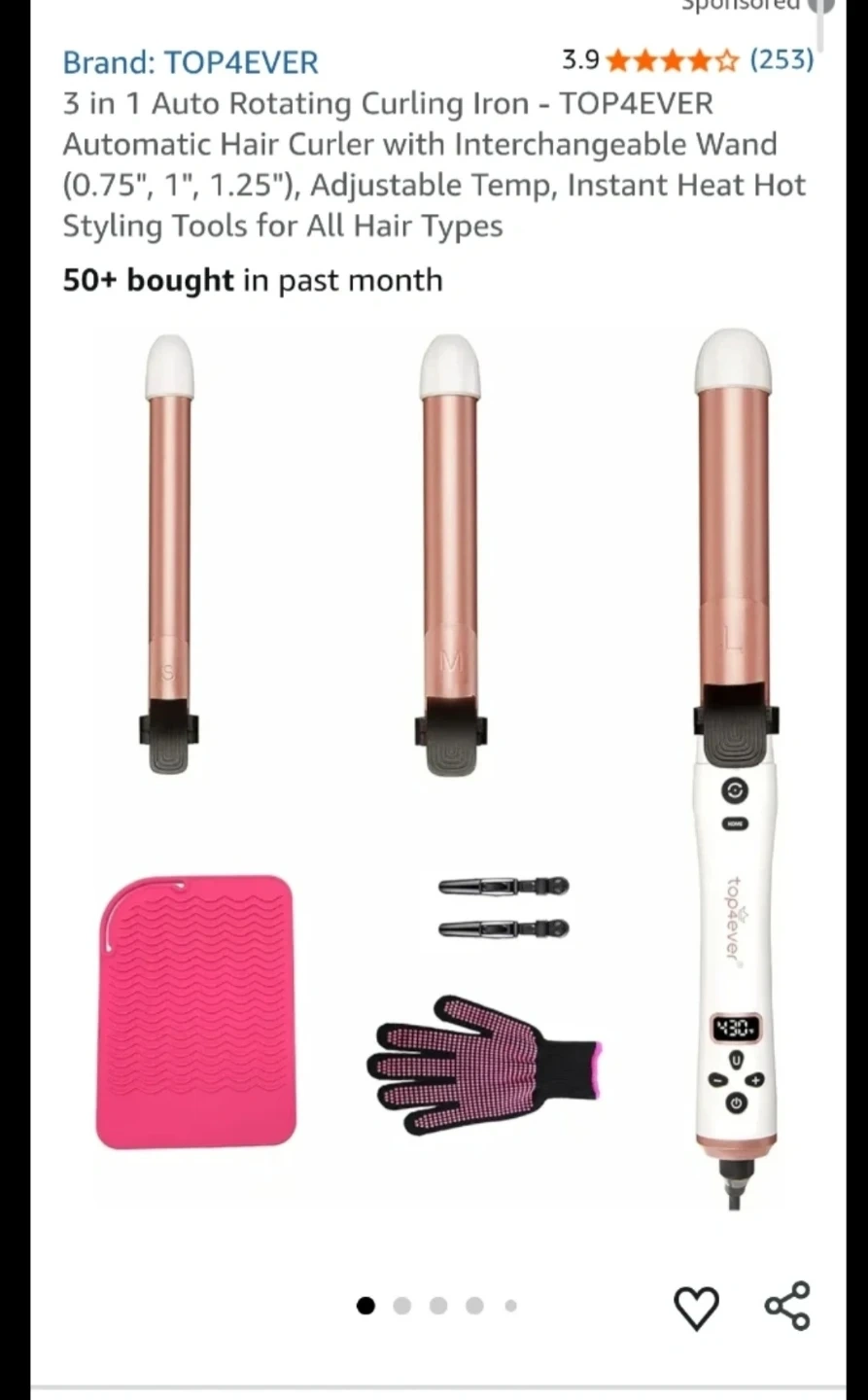 3 in 1 Auto Rotating Curling Iron - TOP4EVER Automatic Hair Curler with Interchangeable Wand (0.75", 1", 1.25"), Adjustable Temp, Instant Heat Hot Styling Tools for All Hair Types