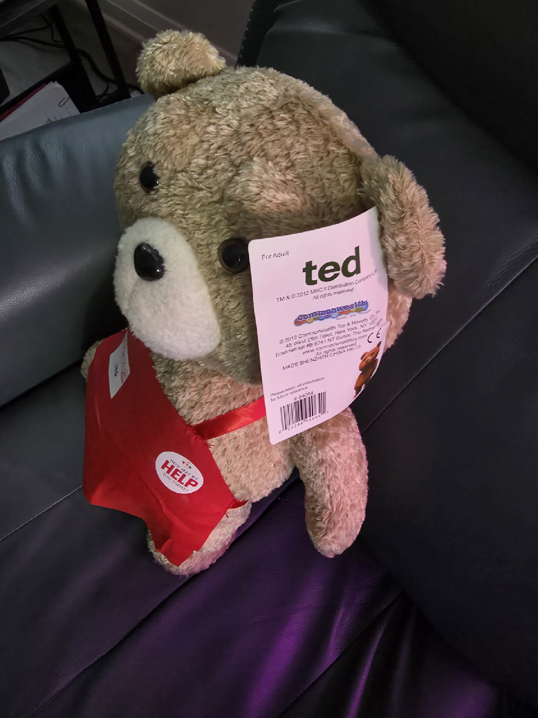 Selling a BRAND NEW cute Ted 2 plush toy! He's wearing a red apron with 'HELP' on it. Perfect for any Ted fan or collector