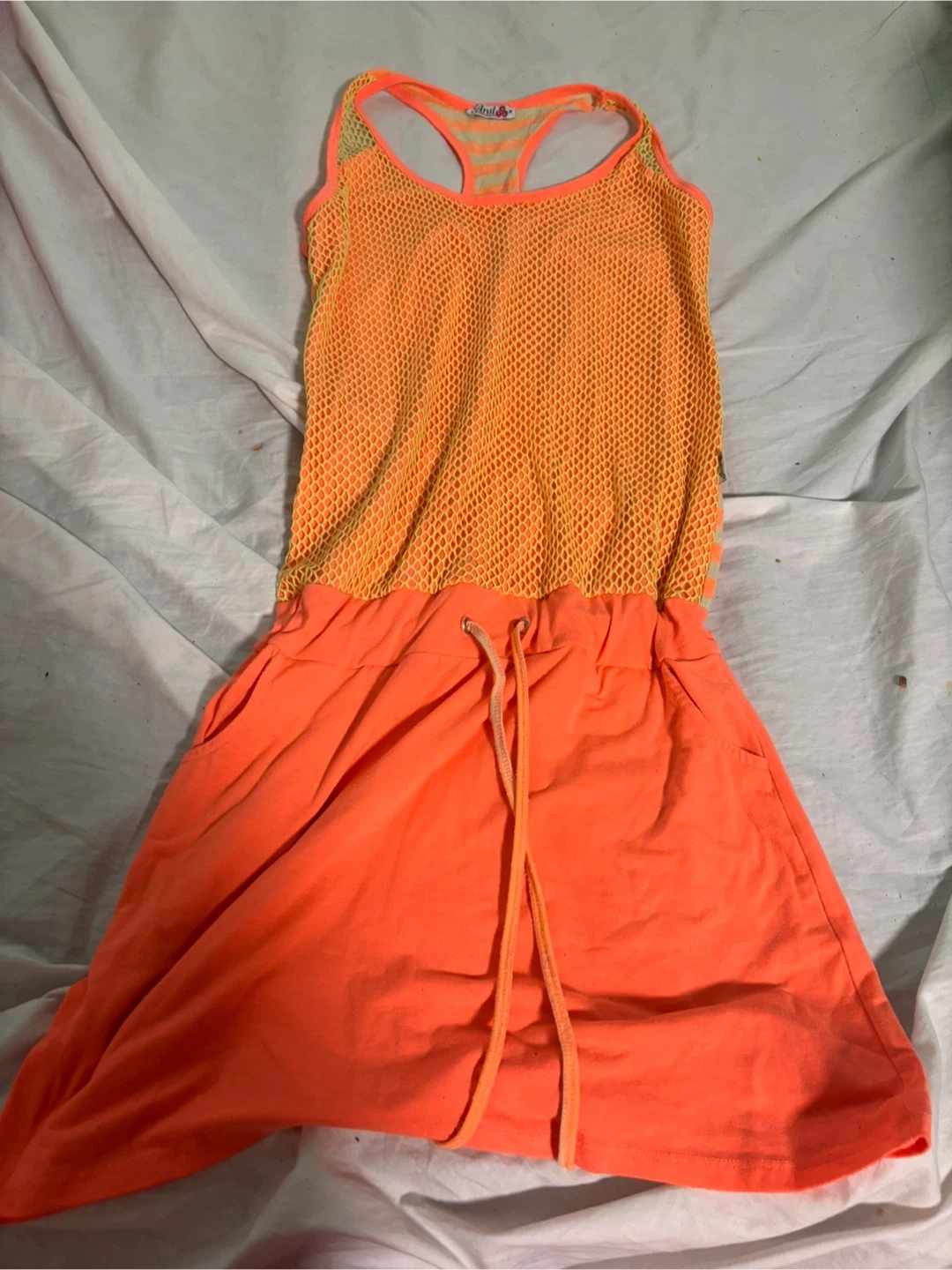 Selling a cute orange knit dress from Anul! This dress features a mesh knit top and a comfortable skirt bottom. Perfect for summer days or casual outings!
