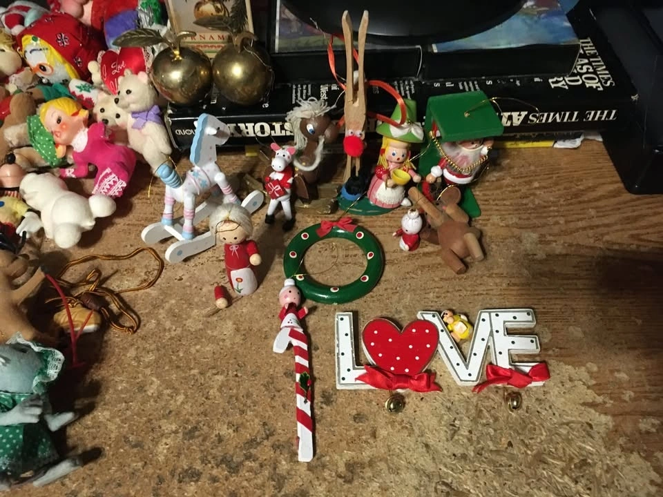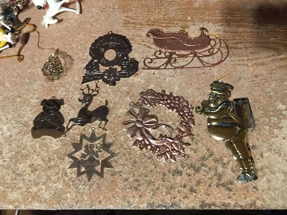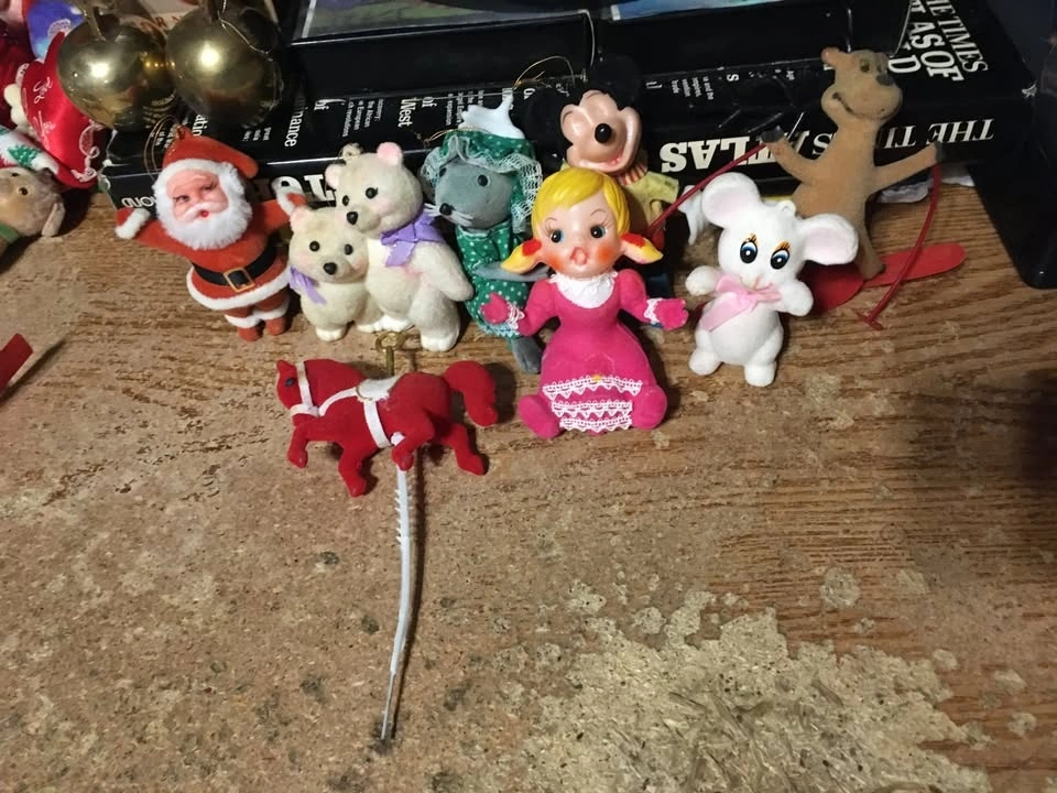 HUGE LOT OF 111 VINTAGE CHRISTMAS ORNAMENTS FLOCKED WOOD METAL A